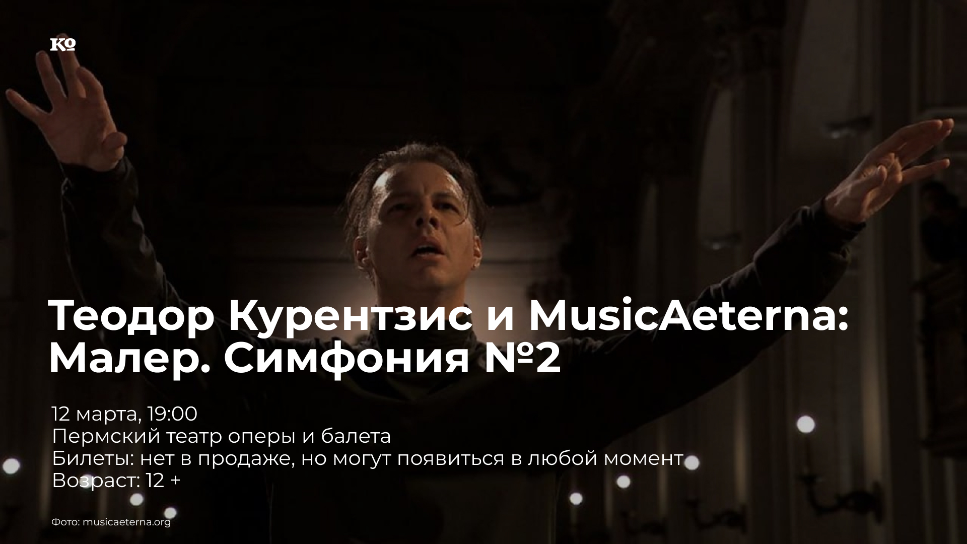 В рамка юбилейного тура оркестр MusicAaeterna сыграет в Перми Вторую симфонию Густава Малера, композитора, чье творчество находится в фокусе внимания оркестра и дирижера на протяжении всей истории musicAeterna. Сложный замысел, философски-религиозный подтекст, гигантский исполнительский состав с участием хора и двух солисток, экспрессия и безудержная тематическая и жанровая «словоохотливость» Второй симфонии привели её к большому успеху на премьере в 1895 году. Симфония «Воскресение» стала одной из наиболее исполняемых при жизни Малера, а с усилением интереса к его творчеству во второй половине XX века заняла почетное место в мировом концертном репертуаре. Солистки — Софья Цыганкова и Юлия Вакула; в концерте принимает участие хор Пермского театра оперы и балета.