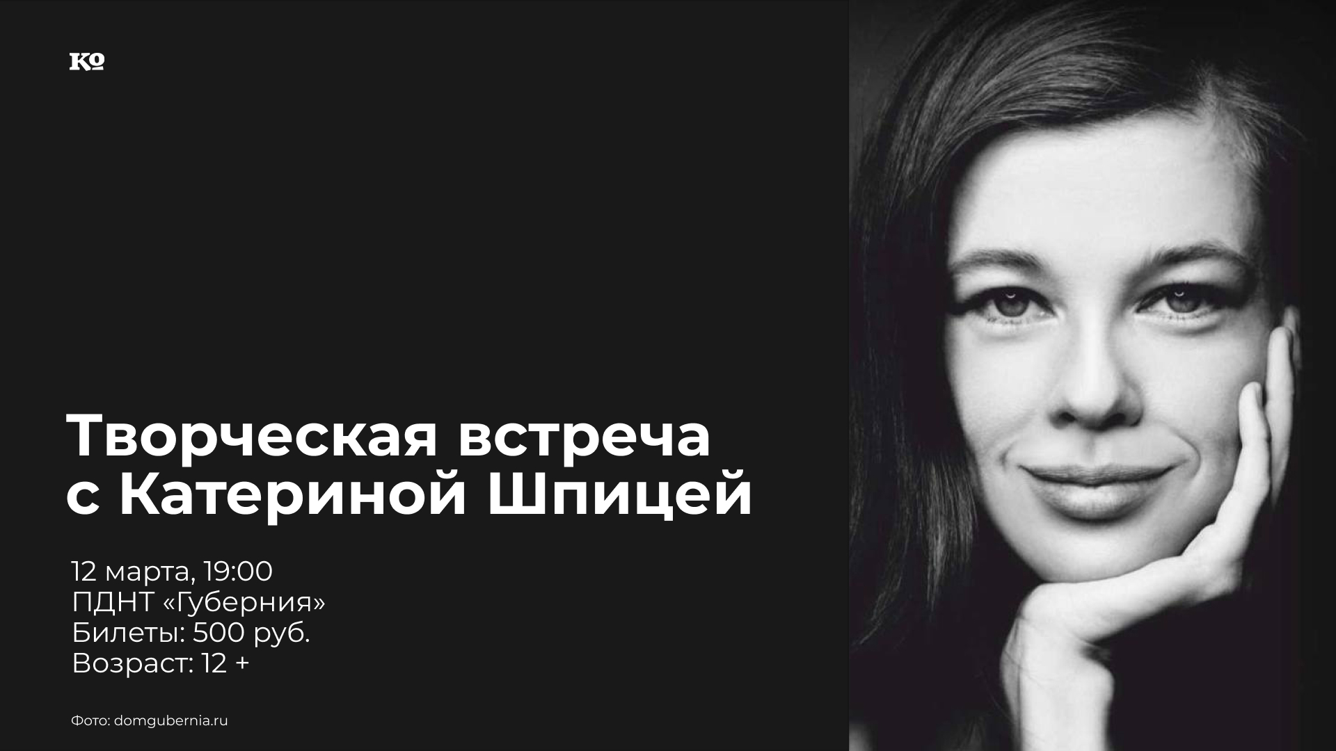 В рамках всероссийского конкурса молодёжных и школьных театров «Моя игра» состоится встреча с Катериной Шпицей, актрисой театра и кино, которая выступит на одной сцене с актёрами четырёх поколений театра-студии «КЛД», в которой воспитывалась будущая актриса. В программе вечера — стихотворения классических и современных поэтов, отрывки прозаических произведений, советские и российские песни.