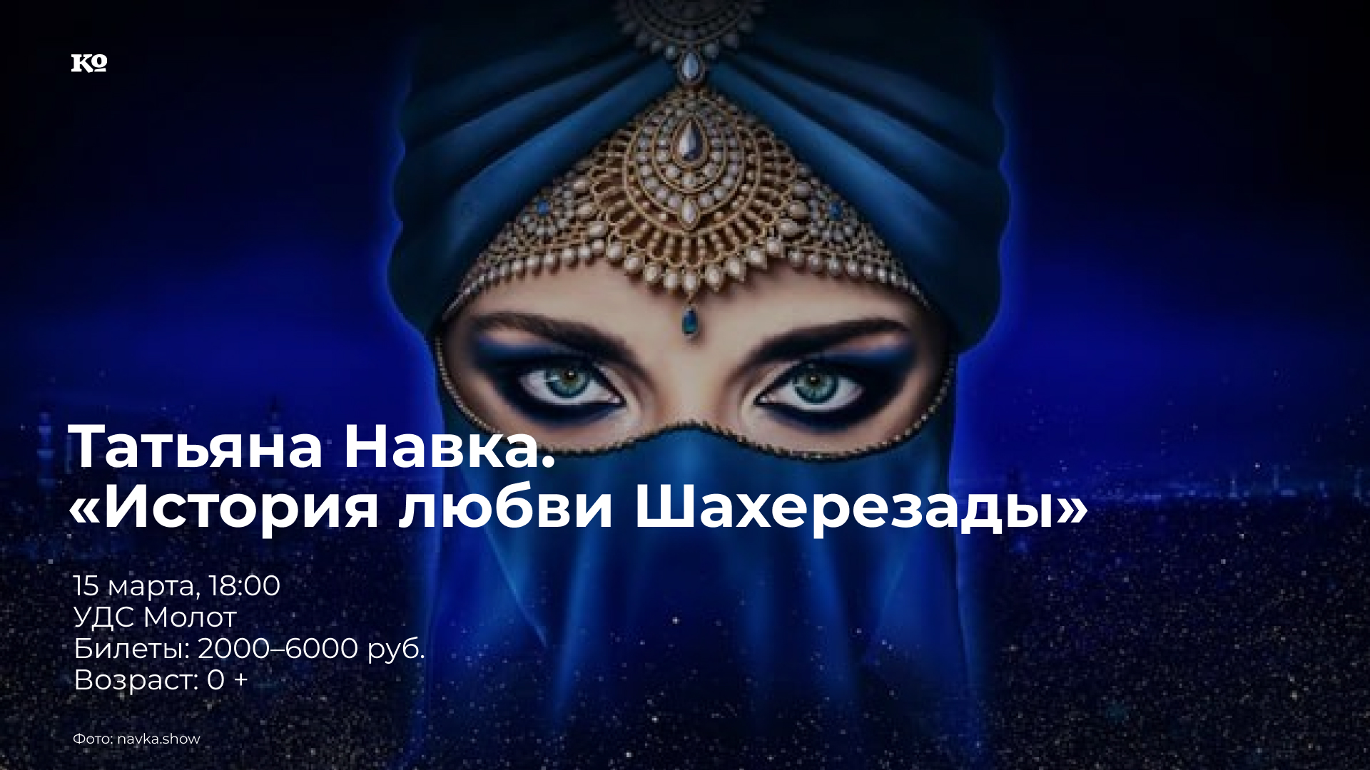 Грандиозное ледовое представление компании Navka Show по мотивам арабских сказок. История любви персидского царя Шахрияра и сказительницы Шахерезады предстаёт перед зрителями в форме музыкально-театрального шоу на льду. В составе участников —олимпийские чемпионы по фигурному катанию, чемпионы мира и Европы, призёры международных соревнований. Благодаря современным технологиям зрители увидят, как лёд загорается под коньками фигуристов, как артисты летают под куполом на волшебных шарах и коврах-самолетах. В саундтреке — музыкальные композиции от песни Юрия Антонова «Море, море...» до хита группы Queen «We Will Rock You». За шутки в спектакле отвечают Джинн и Аладдин — весёлый дух и незадачливый авантюрист, мечтающий стать героем.