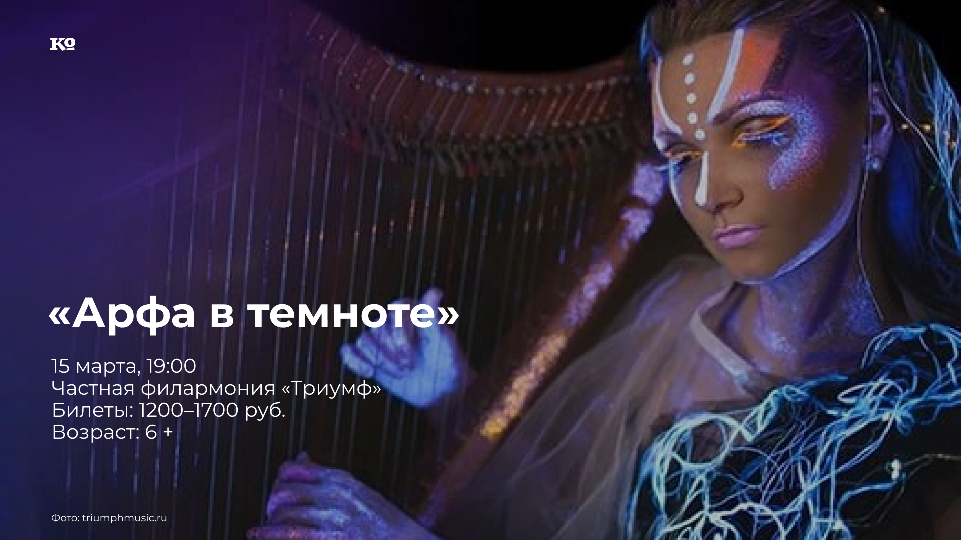 Медитативная музыка арфы и электроарфы сочетается с видеоинсталляцией, переходящей в темноту, из которой постепенно при помощи ультрафиолета и специального грима появляется образ арфистки. Перформанс арфистки Ольги Максимовой проходит в Санкт-Петербургском планетарии с 2015 года. Шоу стало легендарным в этом городе. Ольга Максимова — арфистка, композитор и лауреат международных конкурсов. Она единственная в России исполняет музыку на двух арфах — классической и электрической — одновременно.