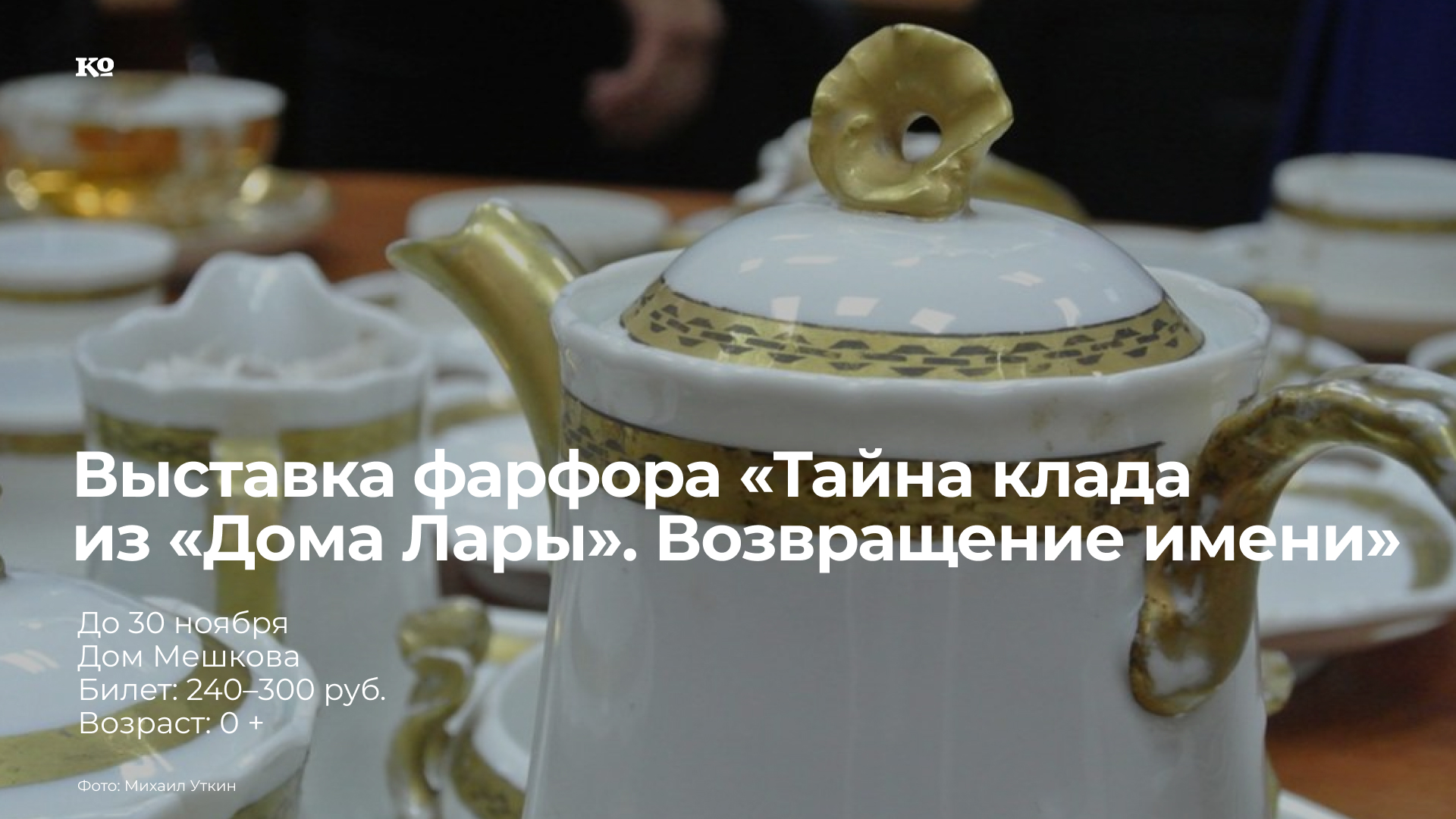 Выставка предметов из уникального клада, найденного на месте старого дома в центре Перми во время археологических раскопок. Есть мнение, что это дом Лары из романа Бориса Пастернака «Доктор Живаго». В 2019 году выставка «Тайна клада из «Дома Лары» уже работала в Доме Мешкова; новая выставка рассказывает о владельцах дома на бывшей улице Покровской, 16 (ныне — улица Ленина) и обстоятельствах, заставивших их скрыть свое имущество. На выставке представлены четыре фарфоровых сервиза и домашняя утварь 1910-х годов, которые нашли археологи Камской археологической экспедиции Пермского государственного университета. Такой большой клад посуды в Перми был найден впервые. Всего было найдено 262 предмета: из них 234 из фарфора, два из фаянса, 11 из стекла, 15 из металла.