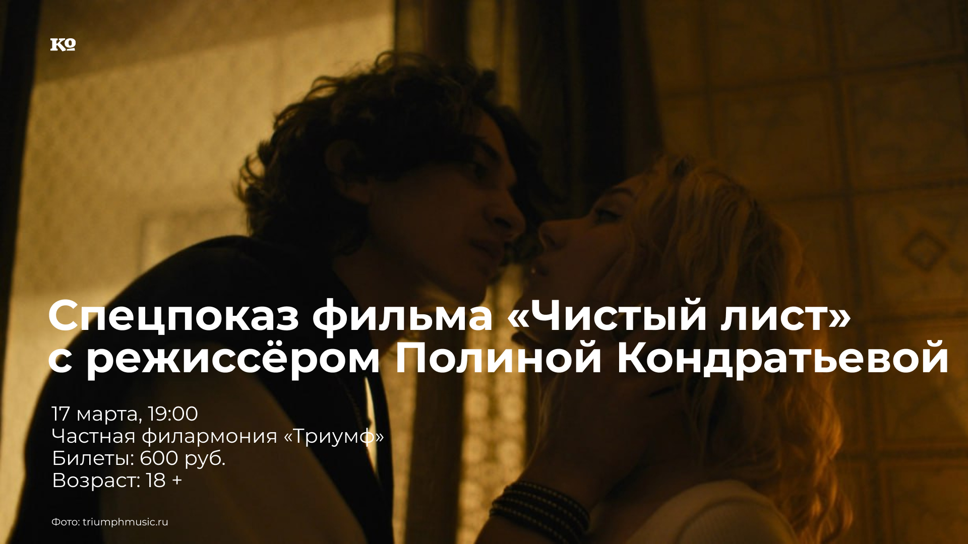 В «Триумфе» — новый формат кинопросмотров. «12 незлобных кинозрителей» — это возможность увидеть и обсудить самое новое авторское кино с его создателями. 12 зрителей разных профессий и разного возраста выступят в роли «присяжных», выскажут своё честное мнение и отношение к фильму лично режиссеру и залу, и открытым голосованием вынесут фильму вердикт. На первой встрече вместе с ведущей кинопроекта Ингой Путиной зрители посмотрят и обсудят фильм «Чистый лист» режиссёра Полины Кондратьевой — историю трёх девушек, внезапно обретших семью друг в друге; фильм про человечность по отношению к окружающим и самому себе с сильнейшими актерскими работами Елены Лядовой и Полины Цыгановой.