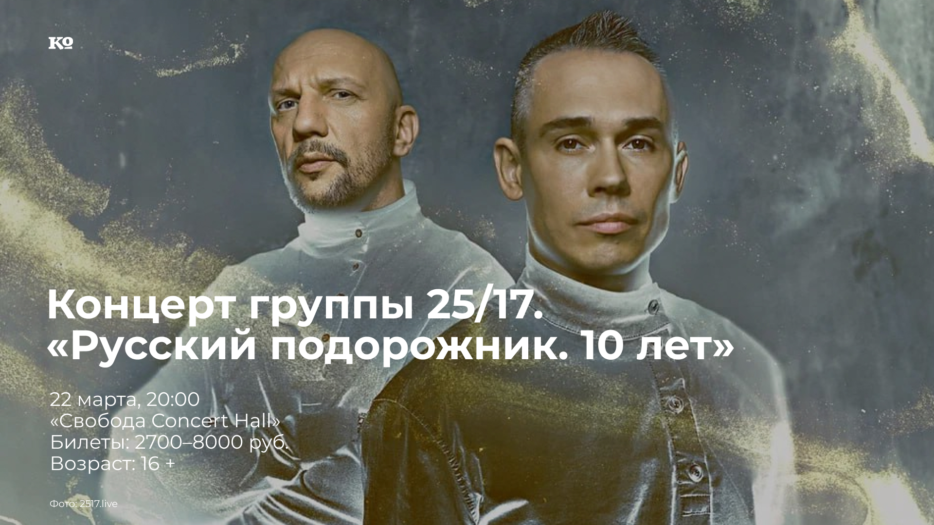 «Русский подорожник» — четвёртый студийный альбом группы «25/17», выпущенный 13 сентября 2014 года. 27 июня 2014 года, на концерте, посвящённом 50-летию Дмитрия Ревякина, лидера группы «Калинов мост», состоялась премьера совместной песни «Подорожник». Альбом и все песни из него долгое время были лидерами российских чартов. Режиссёр Юлия Ауг создала по мотивам этих песен серию видеоклипов, в которых снимались известные актёры, в том числе пермячка Зоя Бербер. Борис Барабанов, музыкальный обозреватель газеты «КоммерсантЪ», назвал серию клипов «Русский подорожник» «фильмом года», Юлию Ауг — «режиссёром года», а также отметил лучшие актёрские работы и лучшие стихи и подытожил: «25/17 ближе к вере и правде, чем кто-либо ещё». В 2024 году группа «25/17» отправилась в юбилейный концертный тур. В живом исполнении прозвучат композиции из легендарного альбома и новые песни.