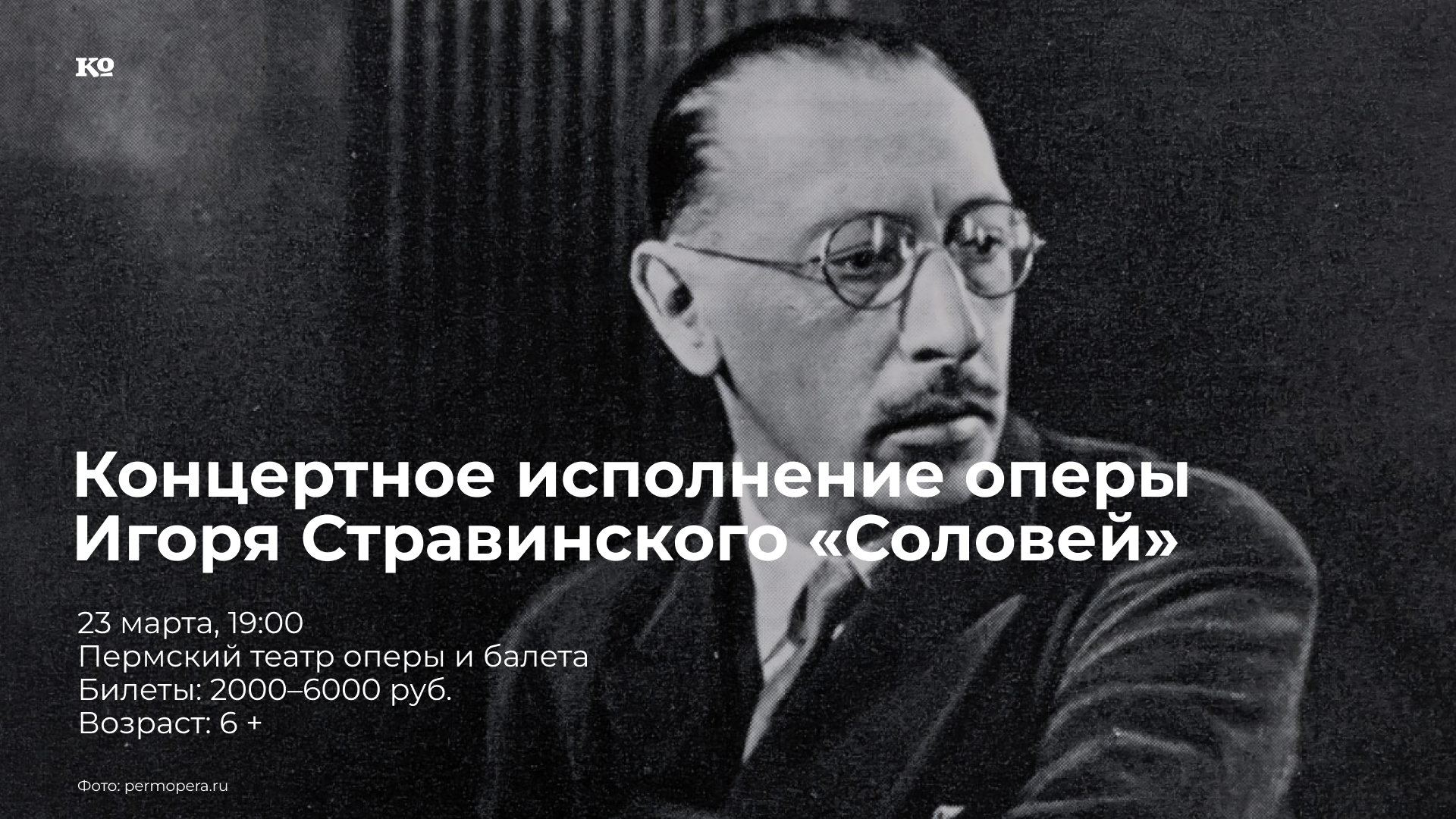 Оперу Игоря Стравинского по мотивам сказки Ханса Кристиана Андерсена исполнит оркестр Пермской оперы под управлением главного дирижёра Владимира Ткаченко и солисты оперной труппы: Надежда Павлова (Соловей), Рустам Касимов (Император), Анатолий Шлиман (Рыбак), Евгений Бовыкин (Камергер), Тимофей Павленко (Бонза), Вера Кравчук (Кухарка), Анастасия Вятскина (Смерть).