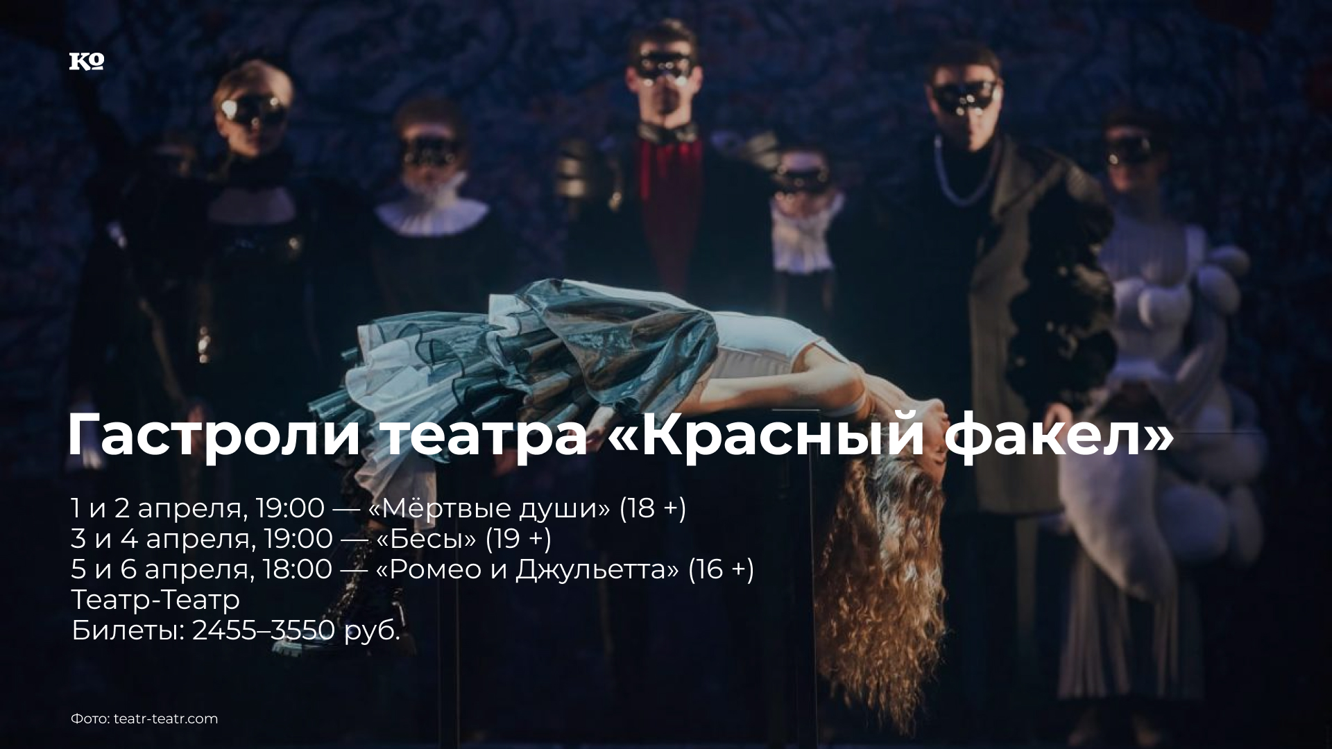 В Перми гастролирует знаменитый театр «Красный факел» (Новосибирск). «Мёртвые души» — постановка Андрея Прикотенко, художественного руководителя «Красного факела». Герои, населяющие этот театральный сюжет, вряд ли будут отвечать хрестоматийным представлениям о них. Кем же окажется Чичиков среди этих усталых интеллигентов, сибаритов и философов, и куда занесёт его птица-тройка? «Мёртвые души» и «Бесы» (18+) составляют сценический диптих по произведениям русской классики; в спектакле по роману Достоевского Андрей Прикотенко продолжает эпическое путешествие по бескрайней России. «Ромео и Джульетта», наверное, самый любопытный для пермяков спектакль: его поставил куратор «Сцены-Молот» Марк Букин, а звуковое оформление создал пермский композитор Андрей Платонов. В прочтении Марка Букина шекспировский сюжет наполняется современной энергией. Мысли Ромео и Джульетты кипят от неразрешимых вопросов, свойственных молодым людям во все времена, а монологи героев превращаются в зонги, которые актёры исполняют под живое сопровождение музыкального бэнда.