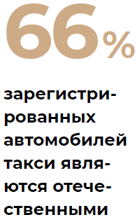 Авторы обращают внимание на резкое падение продаж отечественных машин: исходя из статистики, в 2021 году было продано 1,67 млн авто, а в 2022-м — всего около 670 тыс. Однако, по данным ФГИС «Такси», они всё ещё занимают лидирующие позиции в таксомоторной отрасли. По статистике Министерства транспорта Пермского края, 66% зарегистрированных автомобилей такси являются отечественными.