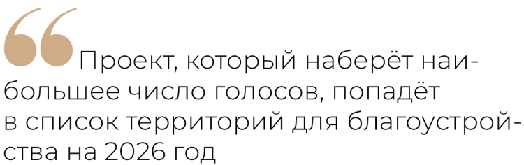 Глава Перми Эдуард Соснин в своём Telegram-канале отметил, что проект, который наберёт наибольшее число голосов, попадёт в список территорий для благоустройства на 2026 год.
