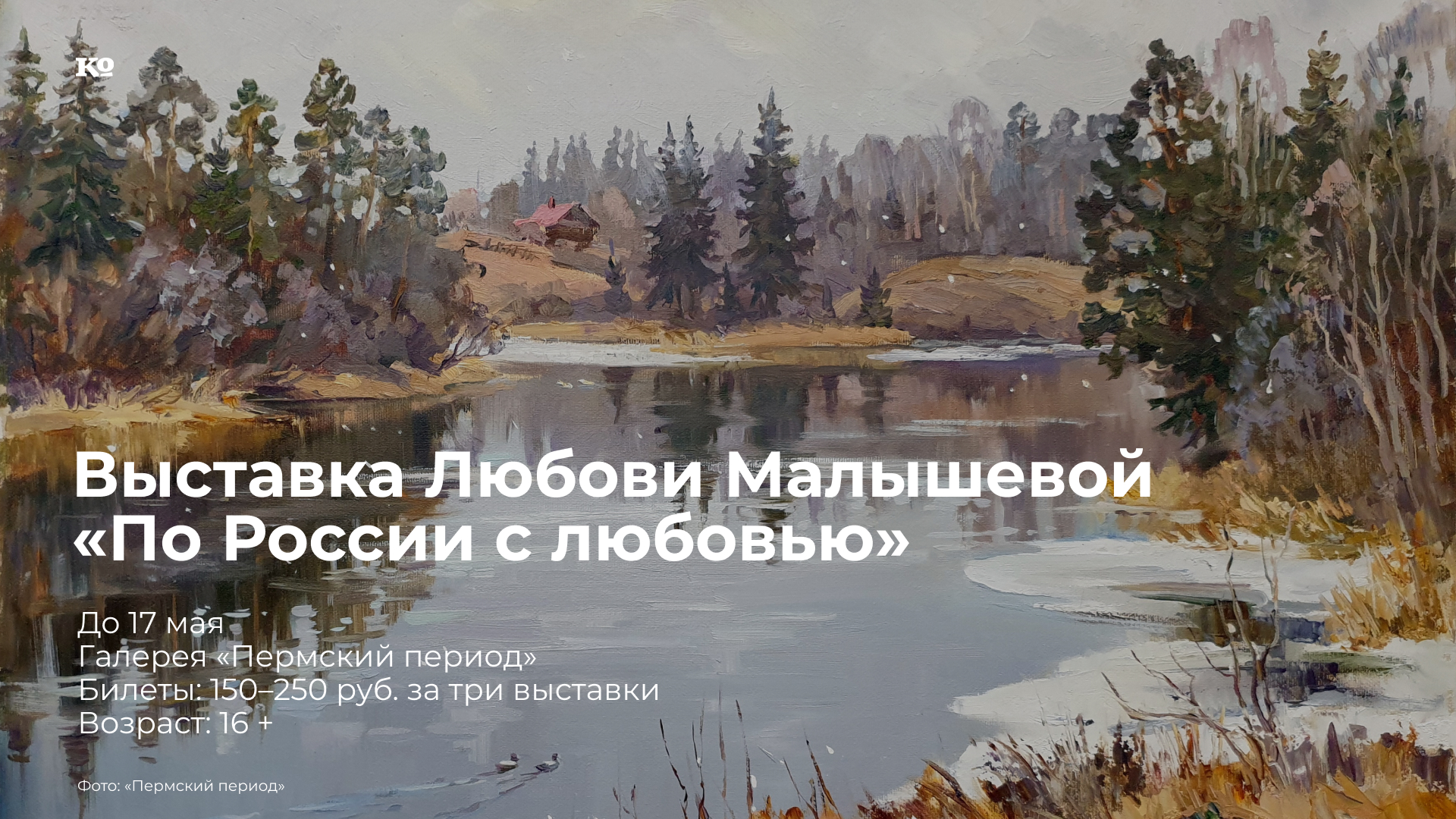 Любовь Малышева — представитель реалистичного направления в живописи, главная и любимая тема её творчества — пейзаж, в первую очередь, лирический. Почти все её пейзажи написаны с натуры, многие — результат честной борьбы художника со стихией. В экспозиции представлено более 50 живописных полотен, созданных за время многочисленных творческих путешествий по России. Пейзажи Любови Малышевой —это прославление живописных уголков родной страны, восхищение богатством и разнообразием сюжетов, относящихся как к смене ландшафтов, так и к смене времен года.