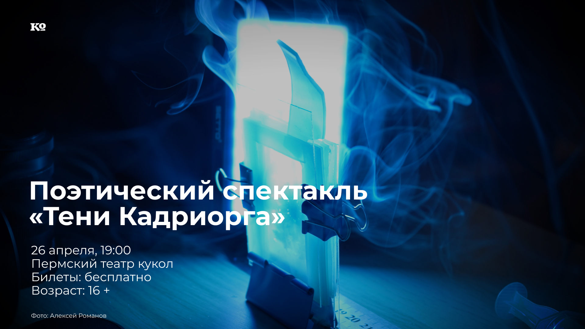 Пермский кинорежиссёр Влад Кричфалуший и поэты Евгений Гусев и Игорь Ваньков представят реконструкцию поэтического слайд-фильма «В тени Кадриорга», созданного в 1981 году фотохудожником и будущим кинорежиссёром Павлом Печёнкиным и поэтами Виталием Кальпиди и Владиславом Дрожащих. Оригинальные слайды не сохранились, но сохранилась фонограмма поэмы «В тени Кадриорга», которую и использовали при подготовке своего спектакля молодые пермские авторы. Выбранная технология создания видеоряда отличается от исконной, но видео обещает быть таким же зрелищным и необычным, как и в 1980-е годы.