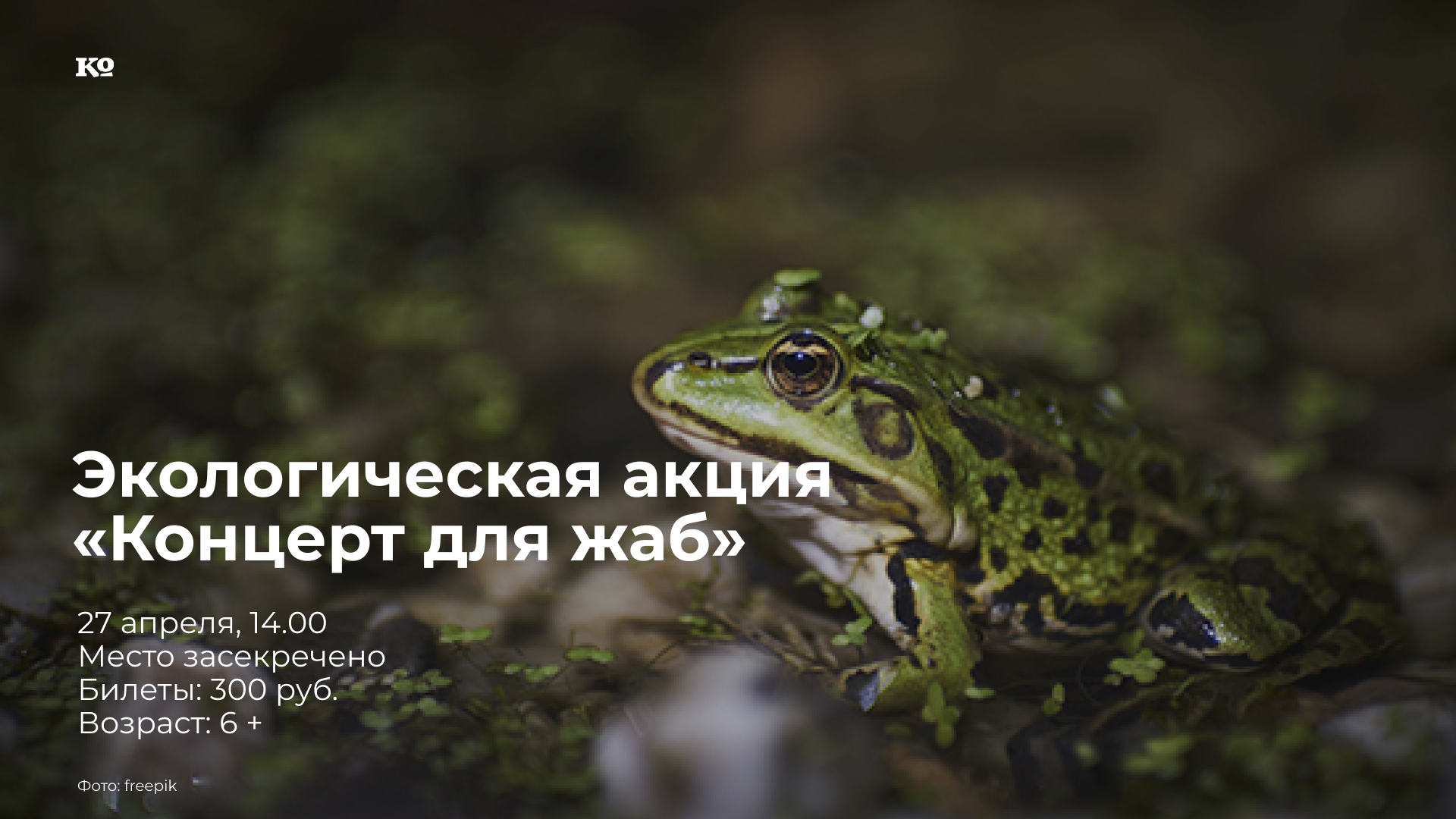 Камерный концерт для тех, кто помогает спасти жаб в период миграции, а также тех, кто готов поддержать экоактивистов материально. Место благотворительной акции неизвестно: организаторы вышлют координаты точки сбора лично каждому донатору. Необходимо написать в соответствующей группе ВКонтакте «Хочу на концерт для жаб», перечислить стоимость билета, и после этого желающим будут сообщены все детали. Волонтёры, которые дежурят на миграционном пути жаб и транспортируют их к Жабьему озеру, посещают событие бесплатно. Программа начнётся с прогулки-экскурсии вдоль Егошихи в сопровождении экоактивистки Надежды Баглей. Обещано много интересной информации о реке и её обитателях. Участникам рекомендуется взять с собой перчатки и ведёрки, потому что встреченные экскурсантами жабы будут эвакуироваться. После часовой экскурсии состоится чаепитие и концерт пермских музыкантов во главе с Алёной Даниловой (флейта).