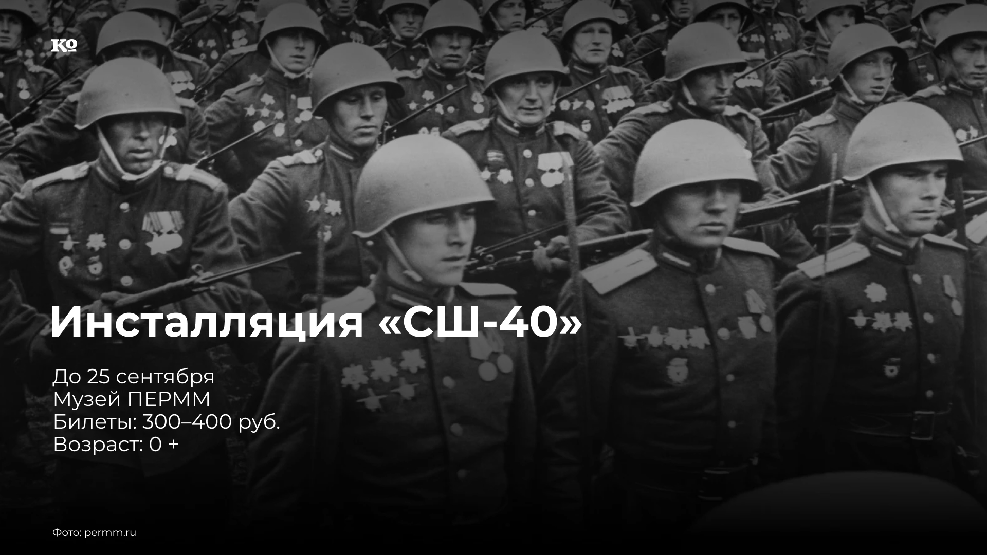 Инсталляция скульптора Рустама Исмагилова и архитектора Александра Леонова, посвященная лысьвенской каске СШ-40 (Стальной шлем) — легендарному защитному головному убору времён Великой Отечественной войны. Лысьвенский завод был единственным в России изготовителем стальных касок для Красной армии. Инсталляция изготовлена в виде стелы, в центре которой — увеличенная копия каски СШ-40. Подойдя ближе, зритель видит, как с помощью системы зеркал каска мультиплицируется во всех направлениях: стальных шлемов становится неисчислимо много, и они растворяются в бесконечности.