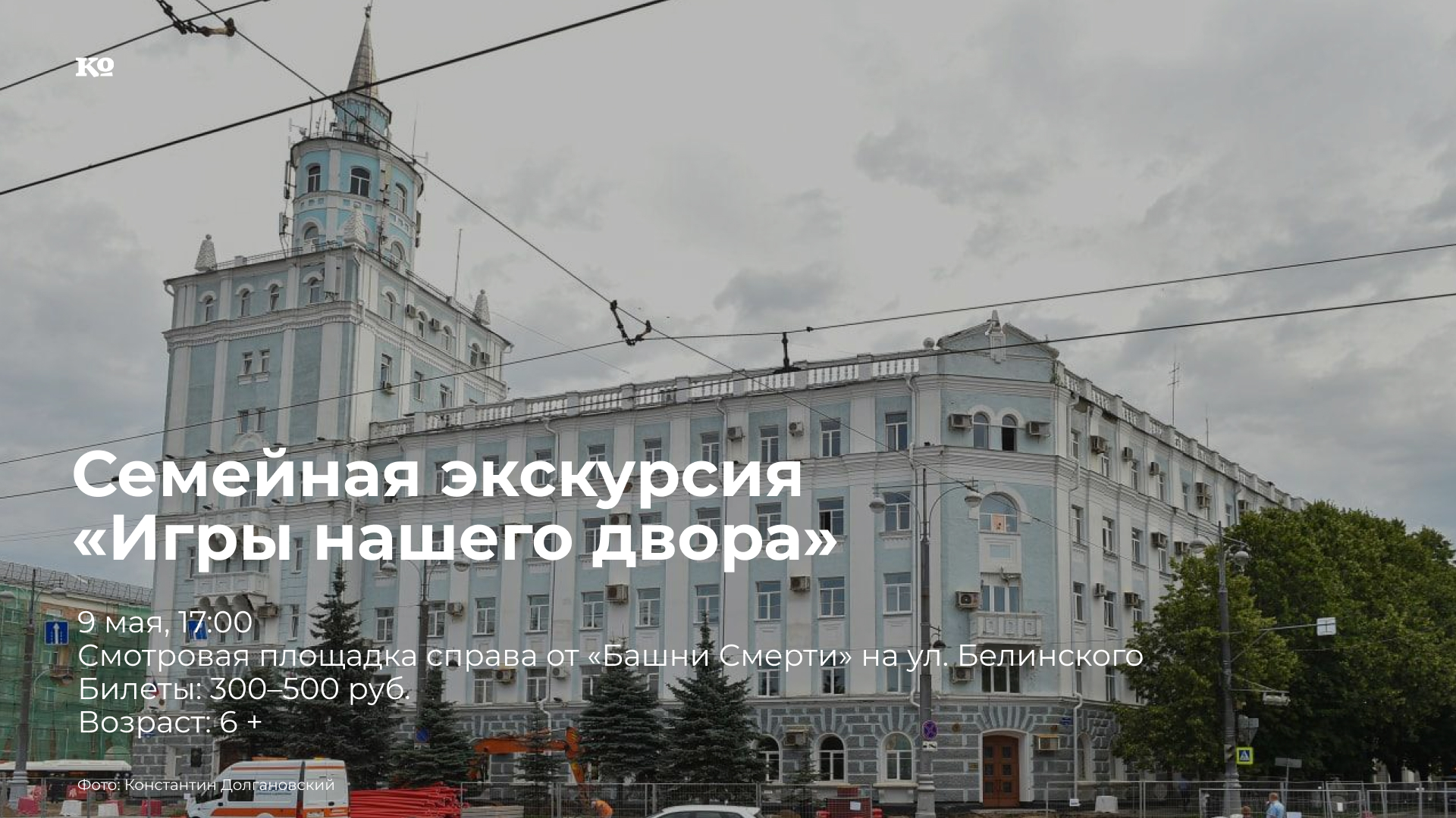 Интерактивная экскурсия для детей и взрослых. Прогулка по «Тихому Компросу» — это не только возможность полюбоваться красивыми отреставрированными зданиями, реконструированной улицей со стройными липами и кленами, но и возможность почувствовать настроение тех дней, когда наши бабушки и дедушки были маленькими. Какие фильмы смотрели, в каких кружках занимались, какие песни пели во дворах и, конечно, кто вершил историю. Участники экскурсии смогут поиграть в игры, которые сегодня снова возвращаются в детскую среду, — резиночки, скакалки, казаки-разбойники, 12 записок. Экскурсию проведёт Наталья Кожанова — культуролог, фольклорист, заведующая этноцентром Пермского дома народного творчества «Губерния». Рекомендуется приходить в удобной обуви.