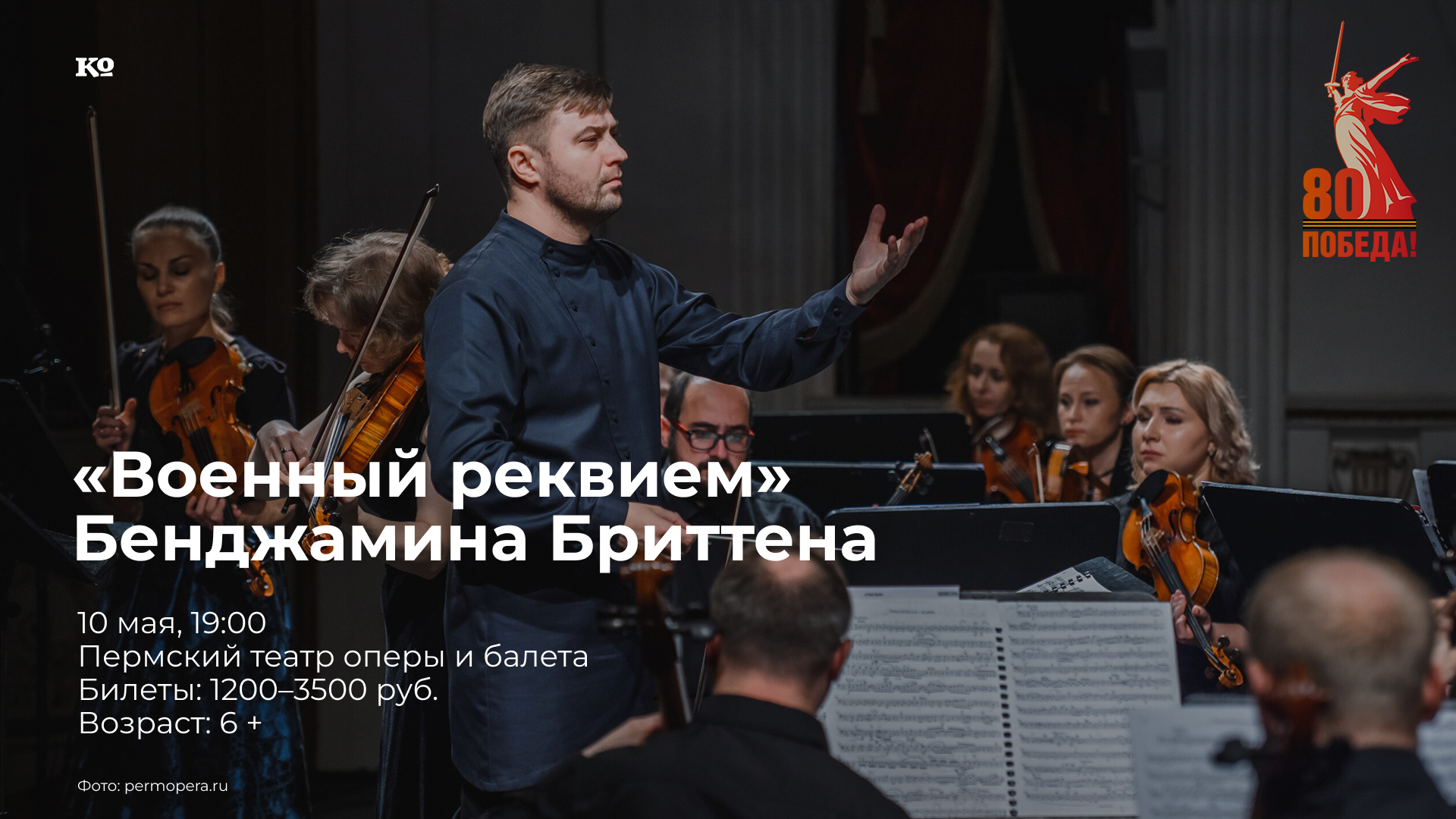 Одно из величайших в мировой истории музыкальных произведений на военную тему, «Военный реквием» был написан британским композитором Бенджамином Бриттеном в 1961-1963 годах. Бриттен посвятил сочинение памяти своих друзей, погибших на фронтах. На вопрос о содержании «Военного реквиема» Бриттен ответил: «Я много думал о своих друзьях, погибших в двух мировых войнах... Я не стану утверждать, что это сочинение написано в героических тонах. В нём много сожалений по поводу ужасного прошлого, но именно поэтому Реквием обращён к будущему. Видя примеры ужасного прошлого, мы должны предотвратить такие катастрофы, какими являются войны». В основе либретто «Военного реквиема» лежат латинский текст заупокойной мессы и стихи английского поэта Первой мировой войны Уилфреда Оуэна. Исполняют оркестр и хор Пермской оперы под управлением Владимира Ткаченко, концертный хор Пермской хоровой капеллы мальчиков, солисты Зарина Абаева (сопрано), Борис Рудак (тенор) и Игорь Подоплелов (баритон), партия органа — Вера Грицай.