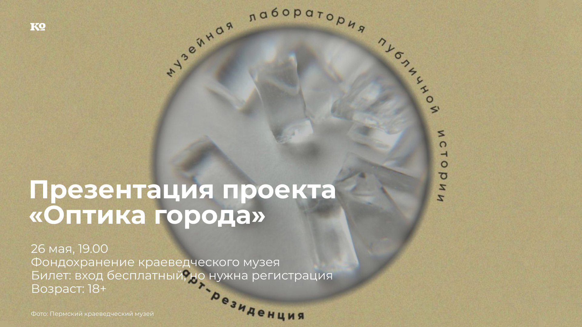 «Оптика города» — третий цикл арт-резиденции Пермского краеведческого музея, в рамках которого художница Анастасия Кочергина-Паршакова исследует визуальные образы Перми. Вместе с реставратором Анастасией Жегловой она работала со старыми фотографиями и текстами дневников и открыток, чтобы осмыслить ландшафты города. Проект соединяет старый и новый облик Перми через заметки, датированные различными эпохами. На промежуточной презентации художница покажет отрывки своей видеоработы, основанной на архивных материалах из музейных фондов.