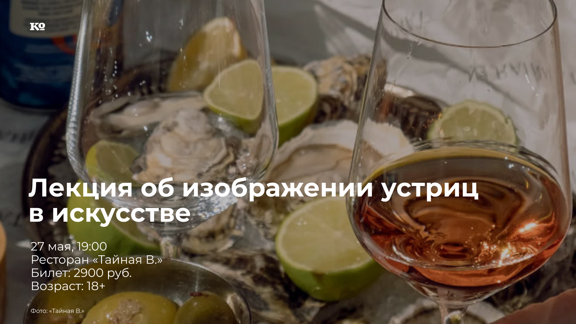 Директор Пермской художественной галереи Юлия Тавризян проведёт лекцию об изображений устриц в искусстве. Гости смогут узнать, что скрывает в себе перламутровая раковина, которую художники XVII века старательно выписывали, и почему натюрморты с морскими деликатесами становились не просто демонстрацией роскоши, но аллегориями любви, наслаждения, бренности и рождения. Мероприятие состоится в рамках проекта аmici dell'arte с целью поддержки искусства. Часть вырученных средств организаторы направят на реализацию публичной программы картины Джузеппа Кьяри «Апполон и Дафна».