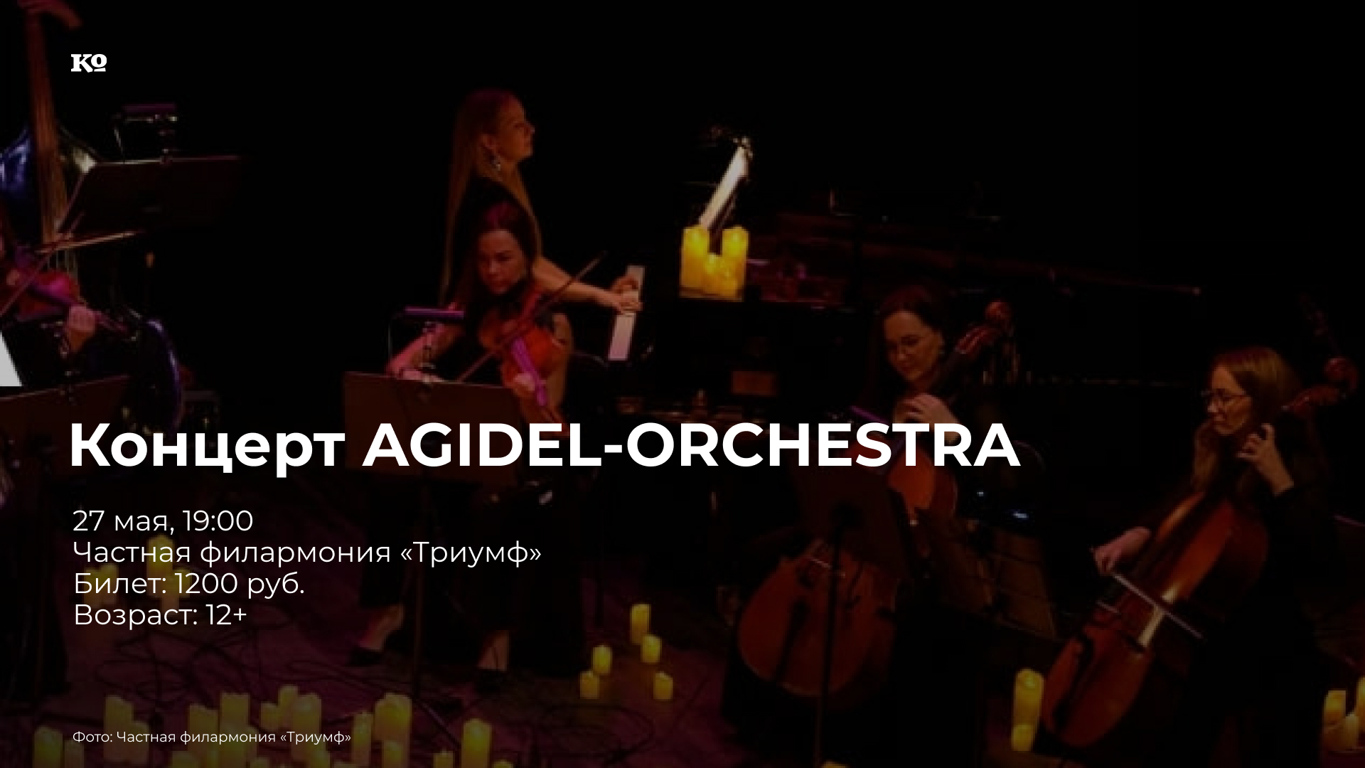 В «Триумфе» прозвучат знакомые мелодии из фильмов о любви в ярких инструментальных версиях. AGIDEL-ORCHESTRA — резидент частной филармонии, камерный оркестр, созданный на базе пермского струнного трио Agidel. В составе ансамбля — скрипки, альты, виолончели, контрабас, фортепиано, флейта и перкуссия. В репертуаре Agidel Orсhestra — известные классические произведения, хиты мировой поп-музыки, джазовые стандарты, темы из знаменитых фильмов и сериалов.