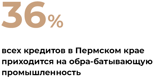 Если говорить о структуре кредитного портфеля, то в России наибольшую долю в МСП-сегменте традиционно занимают производство, строительство, операции с недвижимостью, оптовая и розничная торговля. Согласно данным по Пермскому краю, в 2025 году лидером остаётся обрабатывающая промышленность — на неё приходится 36% всех кредитов. За ней следуют транспорт и связь (18%), а также операции с недвижимостью (10%). При этом отмечается сокращение доли кредитов, выдаваемых торговле (−3%). Ещё более существенное снижение — 20% — зафиксировано в производственном секторе. Вместе с тем наблюдается рост объёмов в таких направлениях, как транспорт и логистика (+17%), а также недвижимость и строительство (+2%).