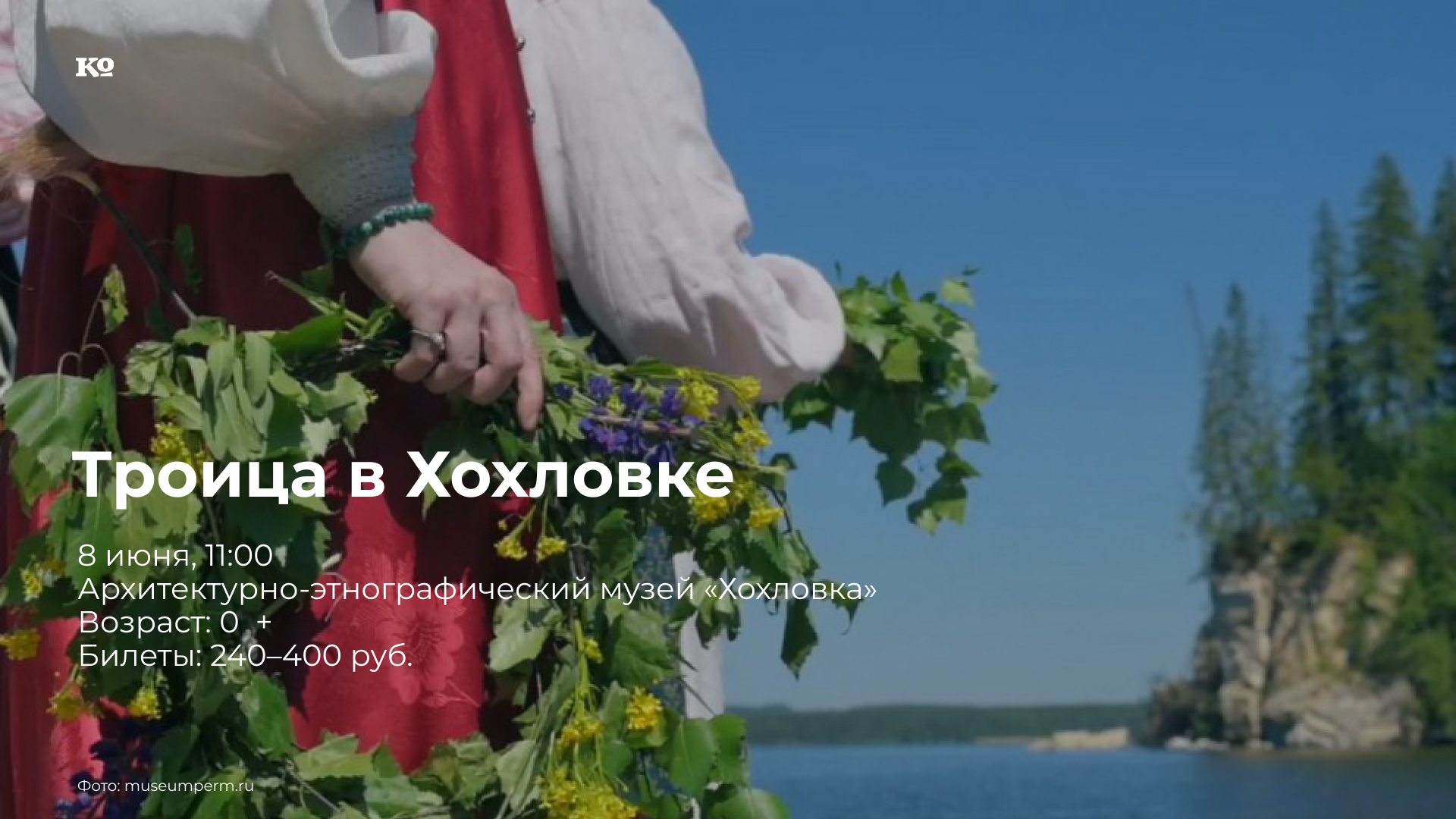День Святой Троицы — один из главных христианских праздников. В народной традиции на Троицу весенний цикл обрядов завершался, а летний — начинался. Это была граница весны и лета. Гости музея разучат троицкие песни, будут водить хороводы и украшать берёзку, как в Ильинском районе, наряжать девочку-берёзку и делать кукол из березовых веток, как в Октябрьском районе, красить яйца в зелёный цвет и катать их с горки, играть в пермские молодёжные и детские игры. Девушки смогут поучаствовать в старинном обряде кумления, женщины завьют венки на берёзах, а затем погадают на них, мужчины и мальчики померятся силой. Кроме того, в программе праздника — экскурсии по музею, мастер-классы по набойке, по украшению избы, по текстильной кукле; танцы под гармошку, деревенские забавы: ходули, бои мешками и другие; шествие с берёзовыми ветками по набережной и общая трапеза.