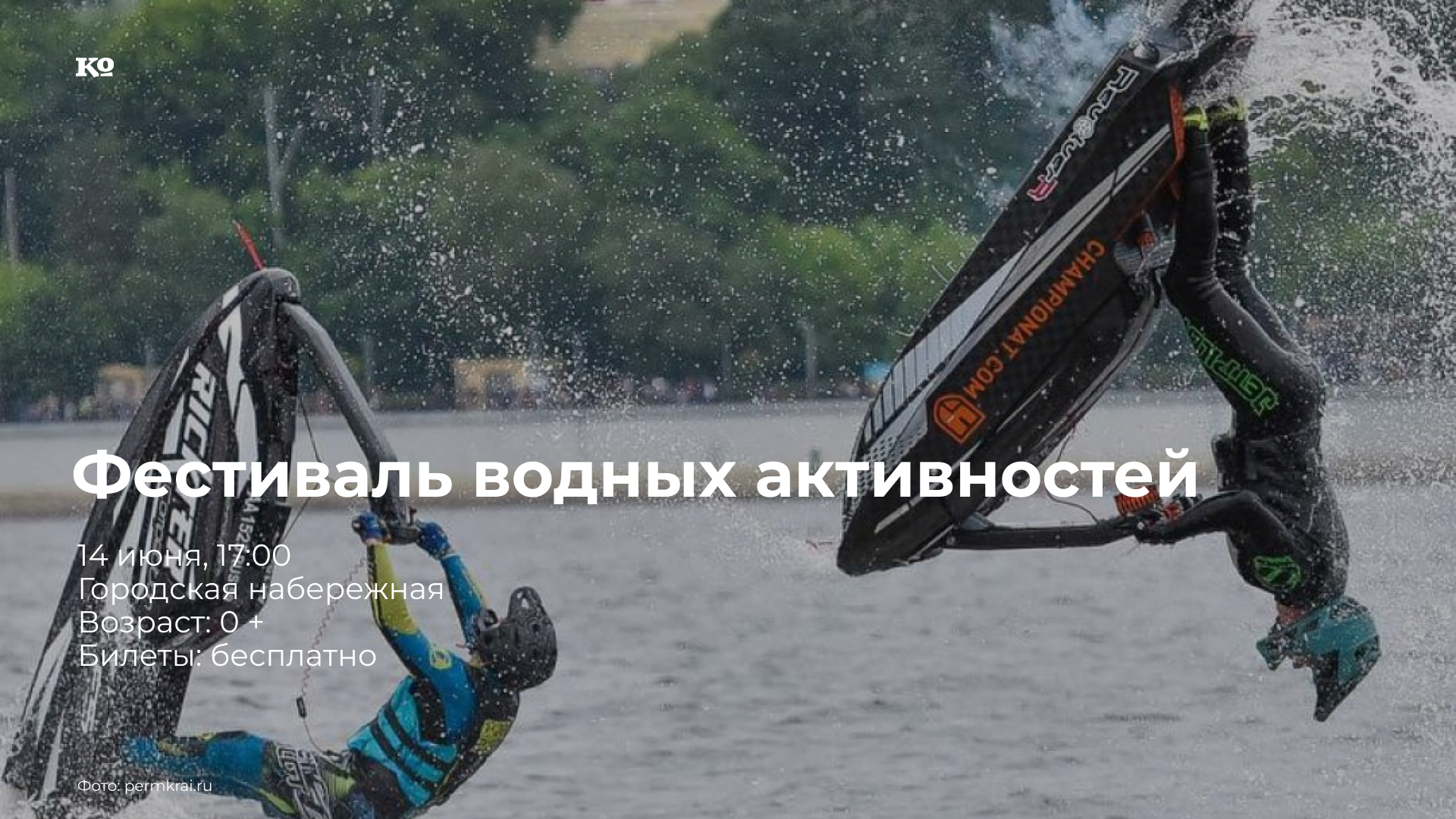 Фестиваль объединит водные виды спорта, которые популярны у пермяков и развиваются в регионе. Зрители увидят выступления гидрофлайтов, аквабайков, соревнования по судомодельному, рыболовному и парусному спорту, гонки на лодках «Дракон», костюмированный заплыв на виндсерфах и sup-досках.Специальным гостем события станет команда NewStarRasingTeam, которая продемонстрирует зрелищную гонку на водных болидах. Планируется обширная развлекательная программа для детей и взрослых.