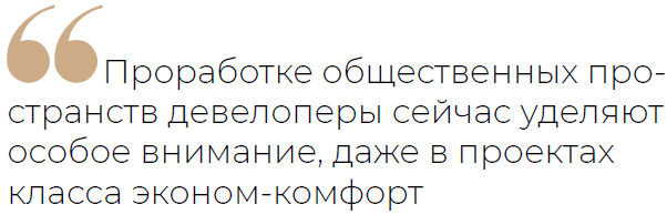 «Проработке общественных пространств девелоперы сейчас уделяют особое внимание, даже в проектах класса эконом-комфорт. Около трети опрошенных нами новосёлов отметили организацию общественных пространств как фактор, повлиявший на их выбор. Согласно статистике, благоустройство территории ЖК важно для клиентов наравне со сроком сдачи дома и продуманными планировочными решениями. По отзывам клиентов, продуманное и качественное благоустройство для них важнее дорогой отделки квартир, потому что в собственной квартире можно со временем сделать желаемый ремонт, а собрать необходимый кворум соседей-единомышленников для улучшения общественных пространств всего дома — это длительный и трудоёмкий процесс. Поэтому при покупке квартиры клиенты зачастую ставят качество и насыщенность общественных пространств в приоритет», — подчеркнули в компании.
