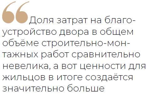 «Доля затрат на благоустройство двора в общем объёме строительно-монтажных работ сравнительно невелика, а вот ценности для жильцов в итоге создаётся значительно больше», — говорят в PAN City Group.