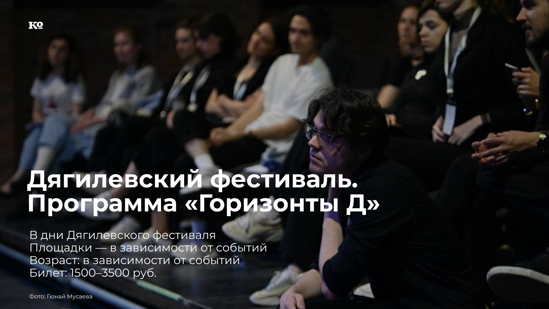 В программе Дягилевского фестиваля впервые заявлена экспериментальная молодёжная творческая программа «Горизонты Д». Её события пройдут в неожиданных локациях вроде планетария, аптеки Бартминского, ботанического сада ПГНИУ или «Экохода» на Каме. Среди форматов – звуковые инсталляции, поэтические перформансы, «бродилки», концептуальный балет. Некоторые проекты связаны с коми-пермяцким языком и культурой, в некоторых потребуется участие зрителей. В программе участвуют молодые художники из Перми, Москвы, Новосибирска, Красноярска, Санкт-Петербурга, Будапешта, Парижа и Еревана. Куратор программы Александр Шумилин.