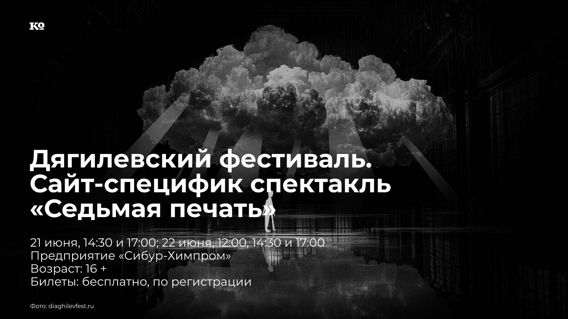 На территории действующего промышленного предприятия «СИБУР-Химпром» развернётся спектакль-путешествие «Седьмая печать», созданный режиссёром Фёдором Федотовым по мотивам пьесы и фильма (1957) Ингмара Бергмана. Средневековье, повсюду свирепствует чума. Рыцарь Антониус возвращается в родные края после долгих лет, проведённых в крестовом походе. Он разочарован в жизни и Боге, но хочет попытаться снова обрести веру и смысл. На пустынном морском берегу Антониуса уже поджидает Смерть, но он просит отсрочку, предлагая сыграть в шахматы: пока продолжается партия, у него есть несколько дней на поиски столь желаемых ответов… Следуя за текстом пьесы, который звучит в наушниках, зрители пройдут через семь пространственных инсталляций. Каждая из них изменяется под воздействием сюжетных перипетий — движутся свет, обстановка, «артисты».