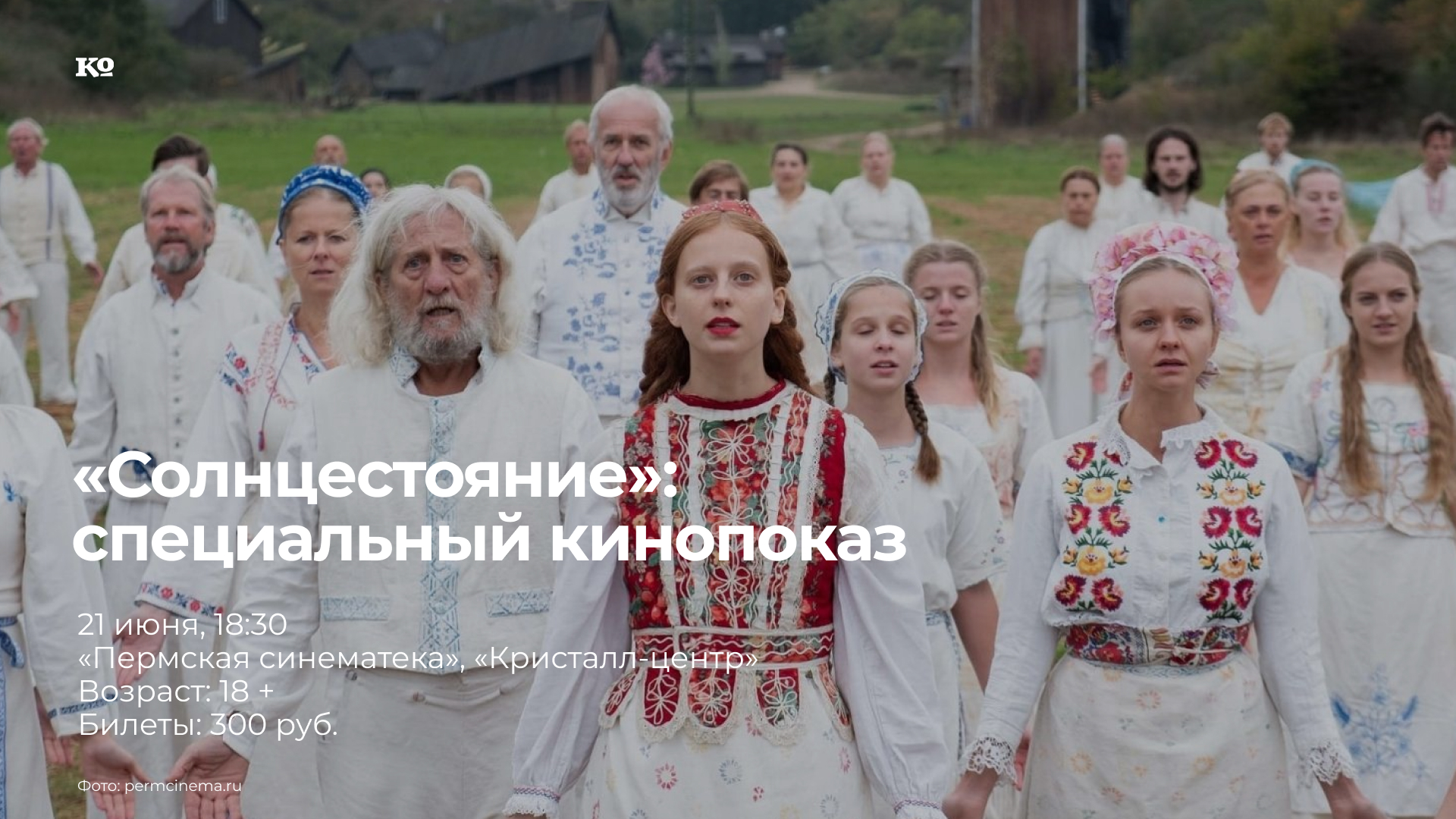 21 июня — день летнего солнцестояния, самый длинный день в году, когда солнце достигает своей высшей точки и почти не заходит за горизонт. В древних культурах этот день был священным — время магии, ритуалов и праздников плодородия. В Скандинавии его до сих пор отмечают как Midsommar — праздник, который длится несколько дней и объединяет людей в традиционных танцах вокруг украшенного цветами шеста солнцестояния. Именно этот светлый, радостный праздник автор фильма Ари Астер превратил в кошмар средь бела дня. «Солнцестояние» — это этнографический триллер, где каждый цветочный венок скрывает тысячелетнюю жестокость. В поселении, отрезанном от мира, раз в 90 лет в этот день проводится уникальный обряд. Именно туда отправляется группа молодых антропологов. Однако вскоре после прибытия там начинает происходить нечто необъяснимое, и под светом солнца исследователям открывается настоящая тьма... Показ на языке оригинала с русскими субтитрами.