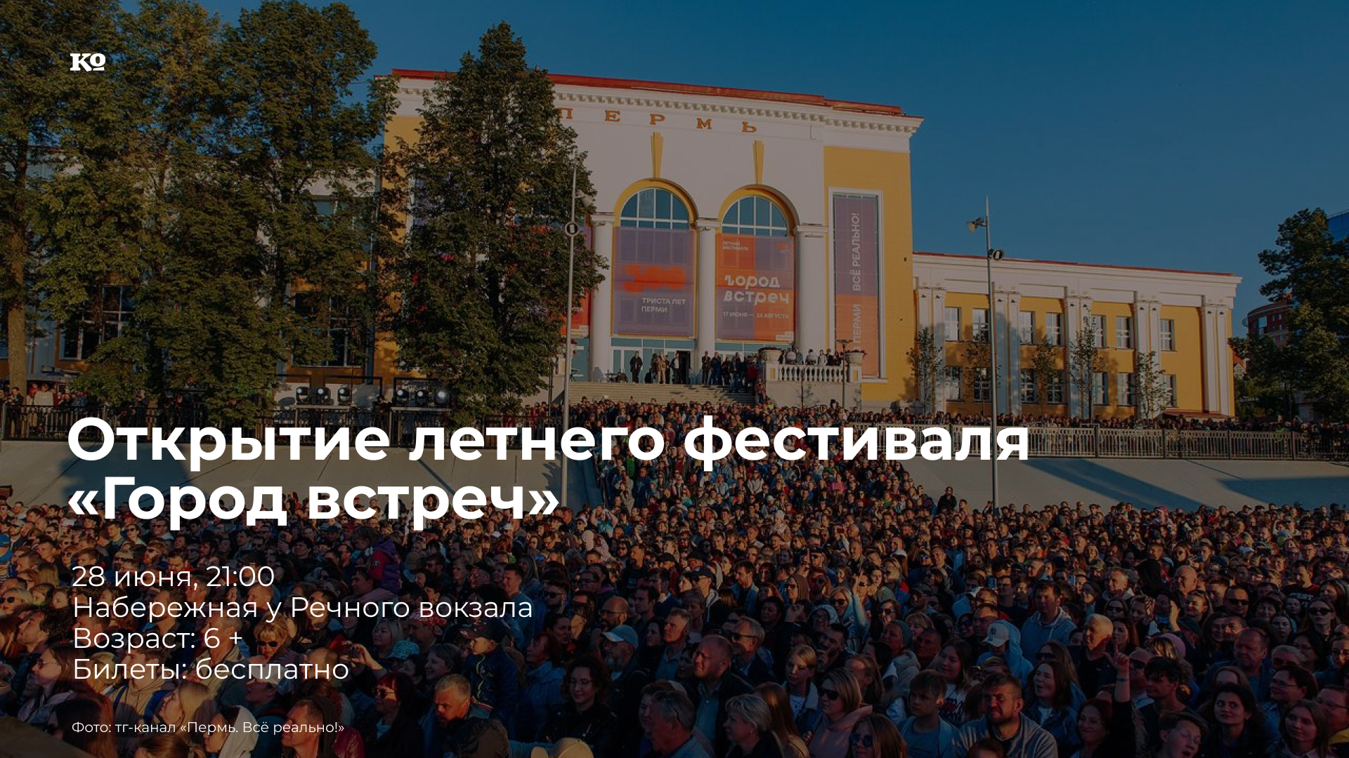Специально для театрализованного шоу-открытия (6+) будет возведена многоуровневая сцена, основной декорацией которой станет вид на Каму и закат. Фестиваль пройдёт в рамках программы «Пермь — Молодёжная столица России», а его открытие станет частью праздничных мероприятий Дня молодёжи. Для шоу пермские артисты готовят свыше 20 номеров. Хедлайнером станет Ева Польна.