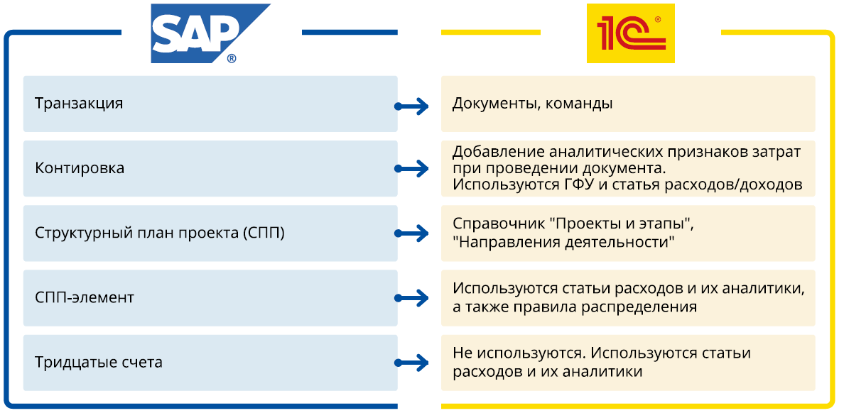 Различия в функционале SAP и 1С