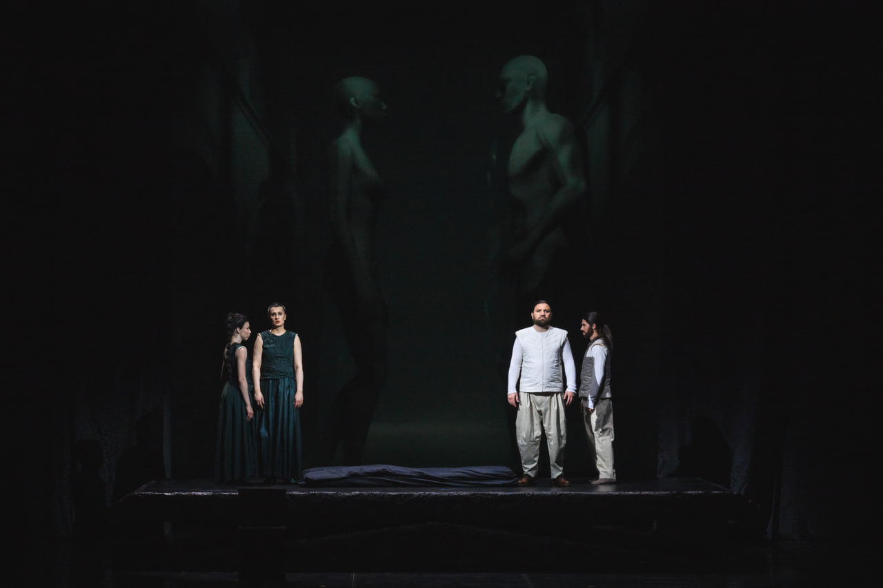 В «Самсоне и Далиле» (16+) Сен-Санса — главной оперной премьере нынешнего сезона, поставленной Анной Гусевой в Пермской опере, — у поющих главных героев появляются танцующие двойники: «внутренний» мир Самсона и Далилы воплотили в пластических образах солисты «Балета Евгения Панфилова»; певцы поддерживают содержательную составляющую роли, танцовщики — эмоциональную.