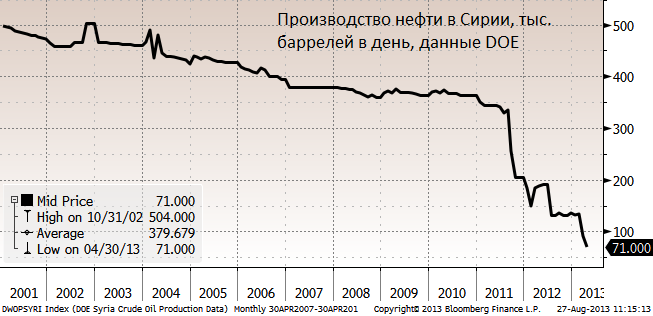 Госсекретарь США Джон Кэрри заявил, что Сирия должна ответить за «моральное бесстыдство» использования химического оружия. Растет вероятность вторжения сил США в Сирию, геополитика давит на котировки акций.