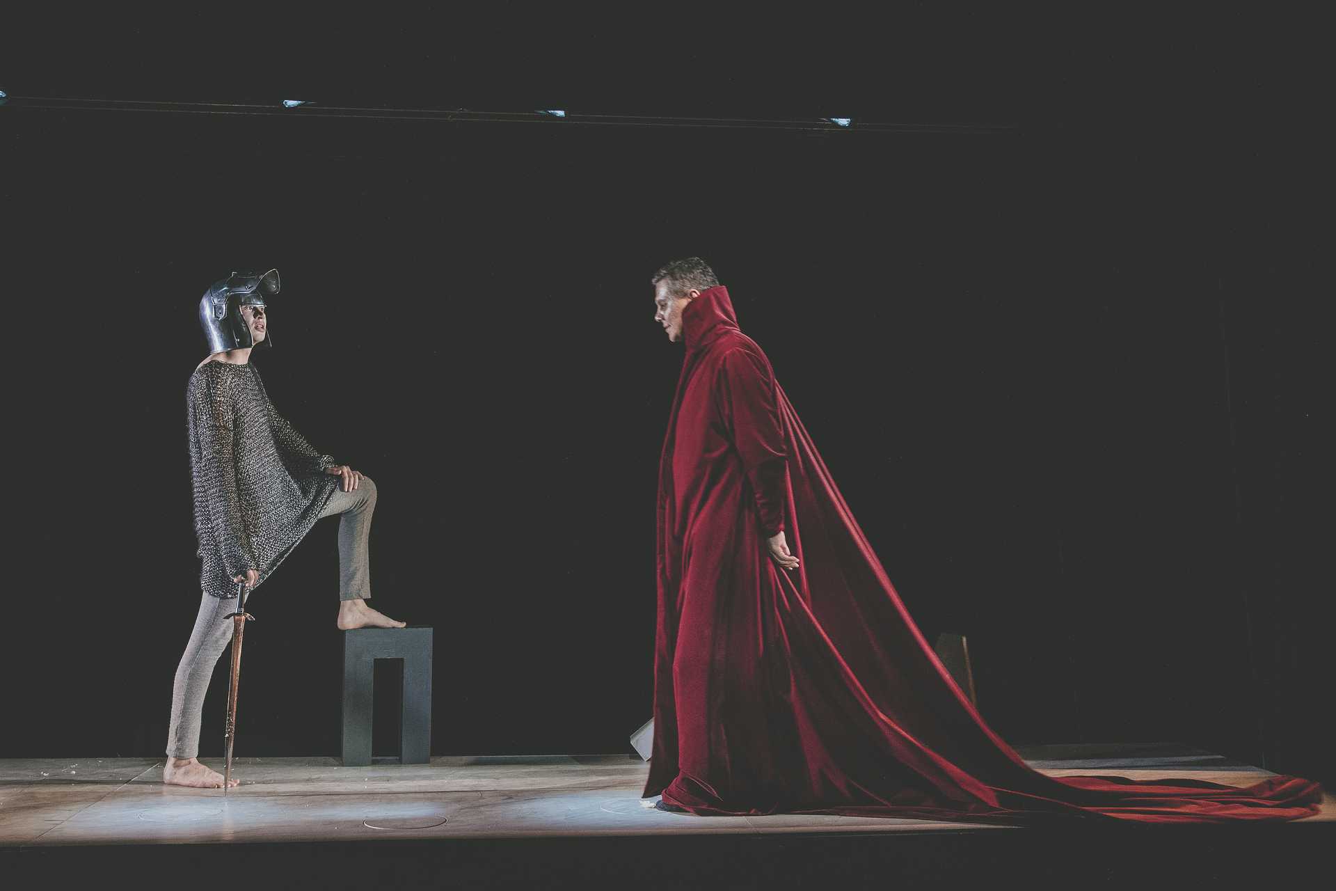 «Скупой рыцарь», в отличие от других сюжетов, сделан полностью на актёрской игре: здесь в центре внимания дуэт старого рыцаря и его сына; однако дуэт получился неравновесный: Алексей Дерягин в роли Барона — настоящий бенефициар постановки, его знаменитый монолог сделан по-актёрски броско, с этаким мхатовско-вахтанговским размахом, а Антон Шахтин в роли Альбера, увы, куда менее ярок и убедителен.