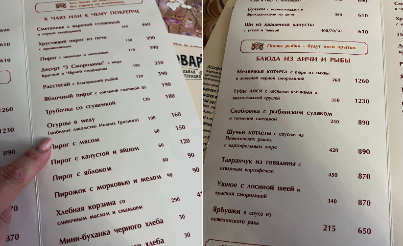 Вот меню одного из заведений, специализирующихся на кухне для туристов: