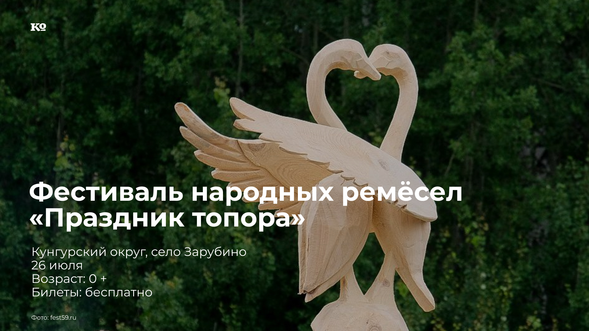 Главным событием фестиваля является конкурс плотников и резчиков по дереву, когда на глазах у публики появятся резные скамьи для сельского сквера, домики и песочницы для детской площадки, чудные деревянные скульптуры. На конкурсной площадке планируется участие не только мастеров Кунгурской земли, но и резчиков с других территорий Пермского края. Будут работать творческие, детские, спортивные площадки и мастер-классы, будут конкурсы «Карусель веников» и «Кукла в национальном костюме» и топорные игры, а также каша из топора и гастрономические угощения. Состоится выставка старинных инструментов для столярного промысла и столярных изделий для быта.
