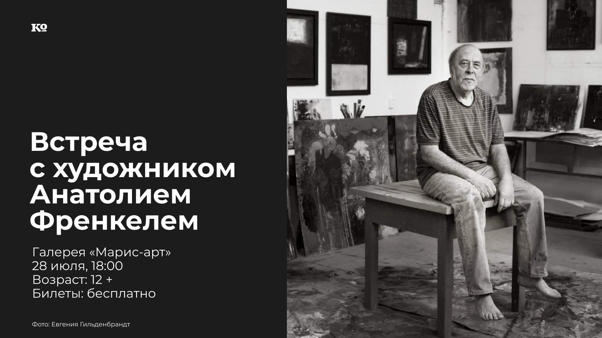 В качестве эпиграфа к событию руководители галереи предлагают высказывание Анатолия Френкеля: «Искусство — это не тогда, когда: «Ну, как я вам?», а когда: «Ну, что смотрите? Не видели, как человек страдает?». «Марис-арт» нечасто проводит встречи с авторами своих экспозиций, но Анатолий Френкель — автор особенный: он не только художник выдающийся, но и мыслитель, эссеист, блогер с оригинальными идеями, остроумными текстами и философским взглядом на жизнь. Встреча пройдёт в рамках работы авторской выставки «Вертикальный лексикон» (6+), где показаны абстрактные полотна Френкеля, созданные в 2020-е годы.