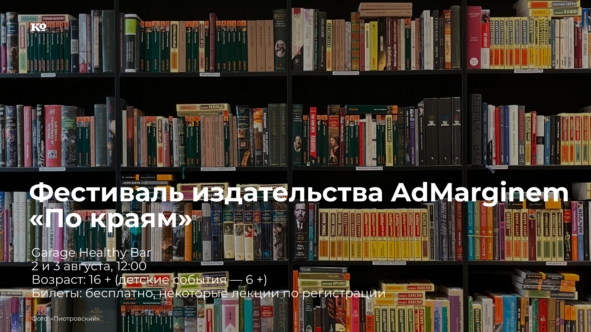 В программе книжного фестиваля — большая распродажа книг: издательство привезет более 2 тыс. книг о философии, науке, искусстве, современной культуре, а также художественную и детскую иллюстрированную литературу. Большинство книг будут стоить от 100 до 500 руб. На маркете можно будет купить изделия ручной работы и винтаж: керамику от «Лепи нежно», ароматические свечи и диффузоры от SVECHA store, виниловые пластинки от TEMPO. В образовательно-просветительской программе для взрослых и детей — лекции, дискуссии, кинопоказ, мастер-классы и лаборатории. Среди лекций: «Ut pictura musica? Пауль Клее в транскрипции Пьера Булеза» искусствоведа и переводчика Алексея Шестакова; «Кино как рентген: от Калигари до Джокера» редактора «Пермской синематеки» Ольги Исаковой; «В поисках утраченного времени: исторические коллажи Флориана Иллиеса и Элисабет Осбринк» продюсера издательства AdMarginem Кирилла Шелеста. Кроме того, состоится просмотр и обсуждение документального фильма «Защитники духа», гаражный квиз по книгам, звуковой театр от группы гөл х гөл, nwtl и Ильи Гришаева и очень много других событий.