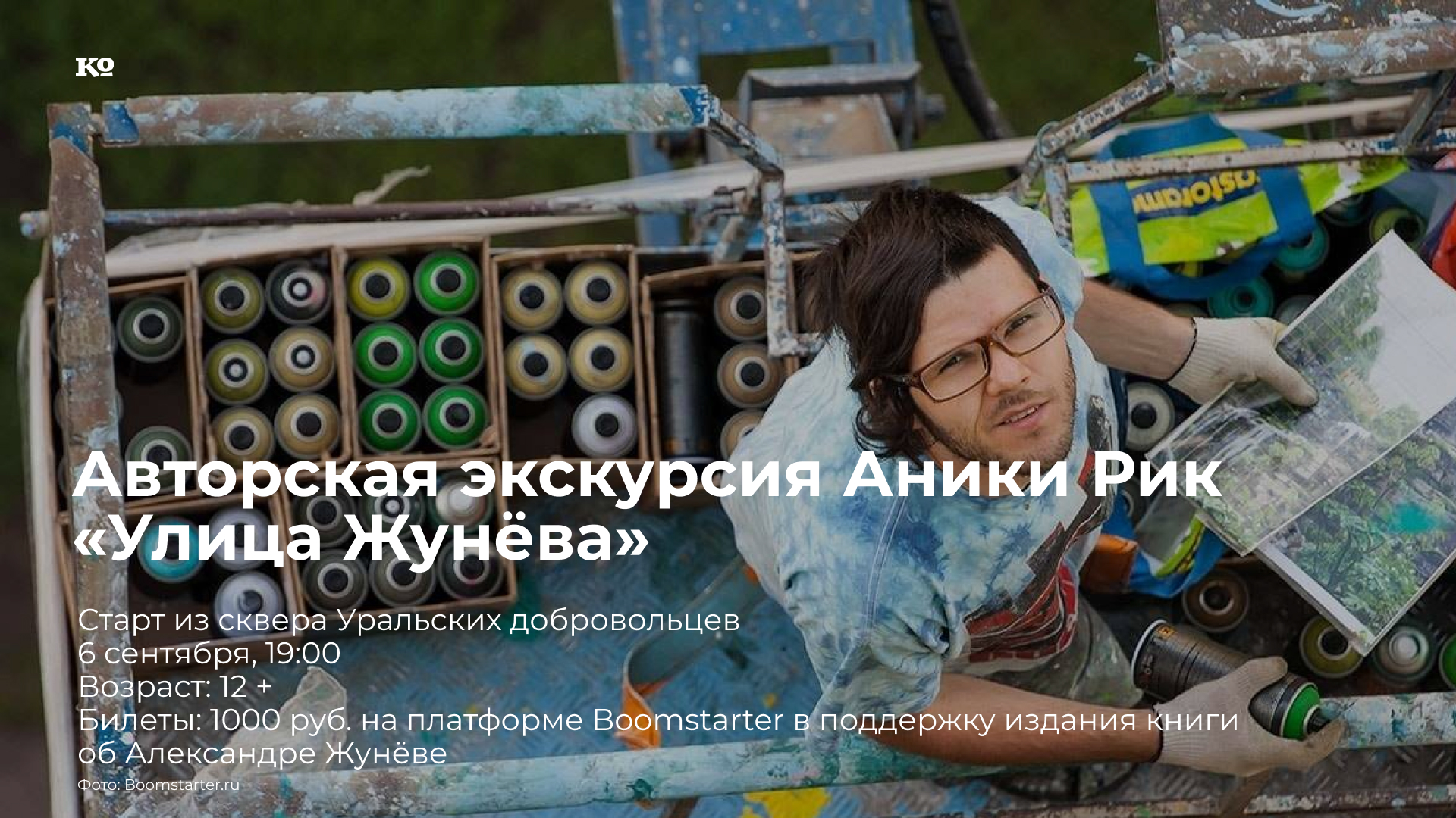 Участники экскурсии «Улица Жунёва» пройдут по местам, где находились или продолжают находиться работы легендарного мастера стрит-арта Александра Жунёва, вместе с журналисткой и поэтессой Аникой Рик, женой и соавтором художника. Александр Жунёв создал в Перми множество запоминающихся уличных проектов, среди которых портреты Есенина и Шевчука, серия расписанных таксофонов и электрошкафов и, конечно же, работа «Гагарин. Распятие», которая стала поводом для большого скандала, попавшего в повестки федеральных и зарубежных СМИ. Экскурсанты узнают истории создания этих (и не только) произведений, увидят эскизы нереализованных работ, найдут оставшиеся в городе объекты.