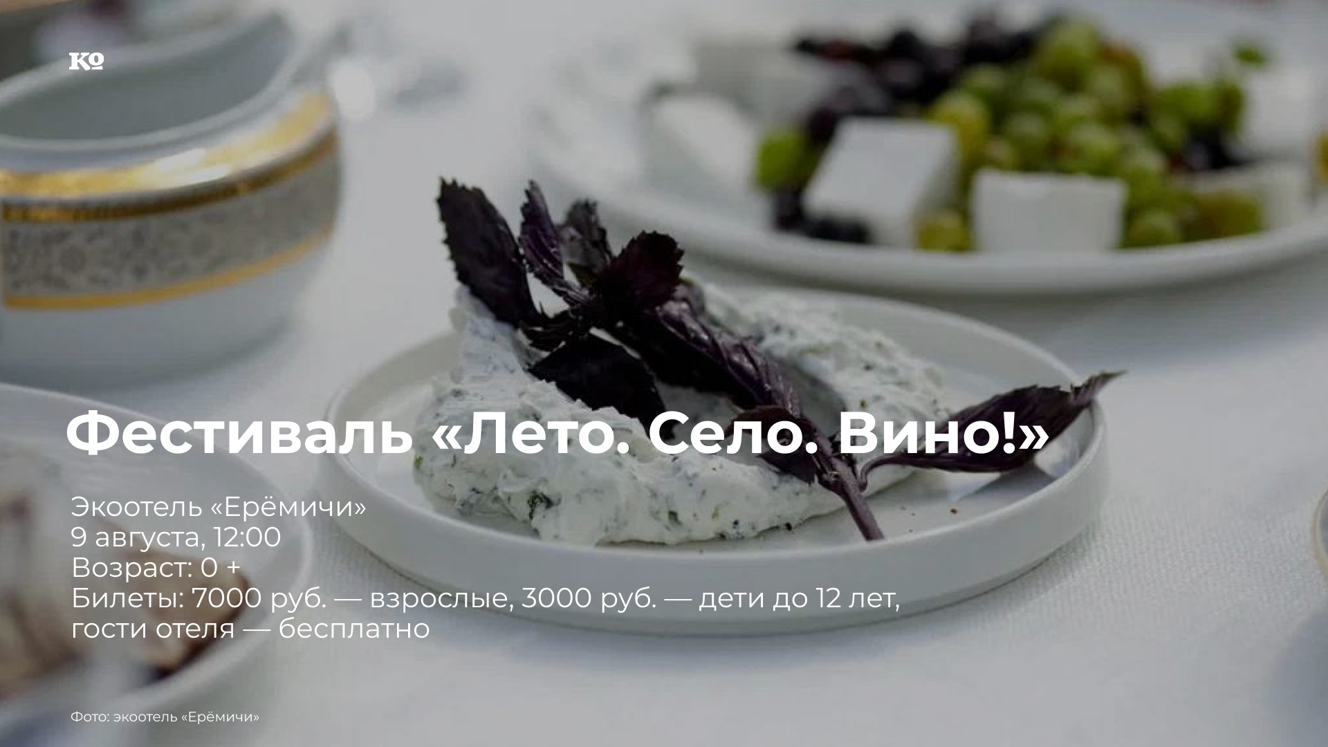 В программе: дегустация вин от винотеки «Винорио», дегустация крафтовых сыров, знакомство с локальными фермерскими продуктами, обед от шефа Сергея Юрина , авторские блюда из сезонных продуктов. На мастер-классе «Создай свой чайный вкус» можно будет научиться смешивать травы, ягоды и цветы для идеального чая. «Вышивальный кружок» с художницей Ксюшей Топычкановой: гости будут создавать общий арт-объект — скатерть с изображением гусей. Скатерть останется в Ерёмичах и станет символом фестиваля и этого лета. По желанию можно сделать вышивку на своей личной вещи — футболке, рубашке, платке. Можно будет научиться доить козу и готовить настоящее деревенское масло с помощью настоящих деревянных маслобоек. Музыкант, автор и исполнитель собственных песен, участник музыкальных фестивалей Иван Степанов будет петь укулеле, а гости смогут подпеть и потанцевать.