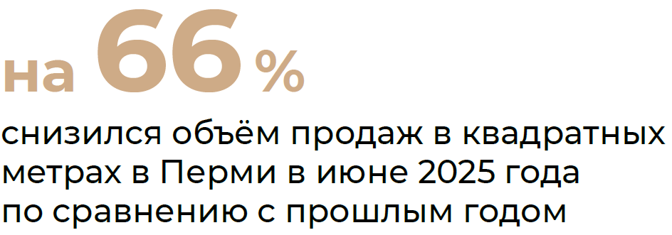 Как сообщает Единый ресурс застройщиков со ссылкой на данные портала Dataflat, в июне по сравнению с тем же месяцем 2024 года количество зарегистрированных Росреестром розничных сделок с квартирами и апартаментами по договорам долевого участия и уступкам в Перми снизилось на 67%, с 1169 до 381. В сравнении с данными за прошлый год, в июне 2025 года в Перми на 66% снизился объём продаж в квадратных метрах (с 53,6 тыс. до 18,4 тыс. кв. м), выручка упала на 61% (с 7,4 млрд до 2,9 млрд руб.), доля ипотеки в сделках — на 23% (с 94 до 71%).