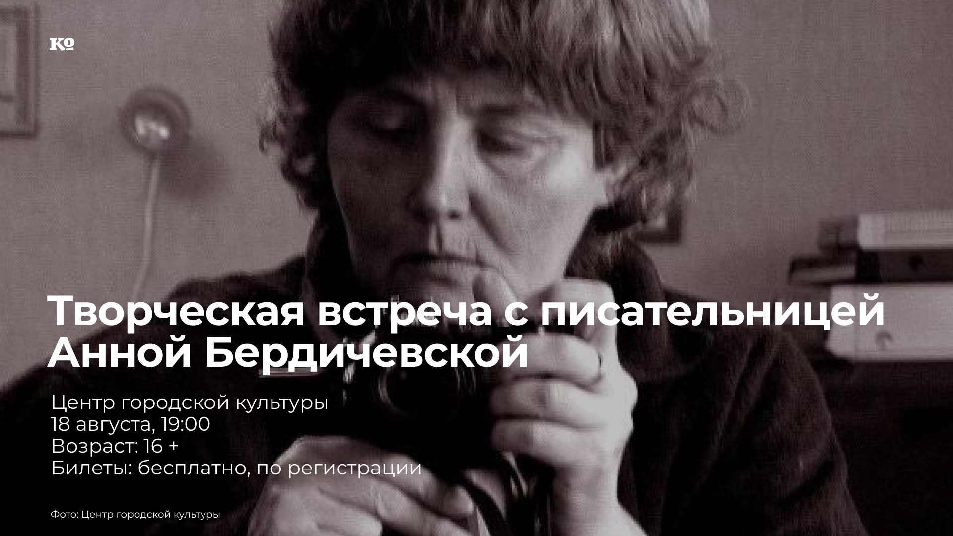 Анна Львовна Бердичевская — поэт, прозаик, журналист, фотограф, чья биография тесно связана с Пермским краем. Анна Львовна родилась в одном из лагерей ГУЛАГа в Соликамске, училась в ПГУ на мехмате, работала программистом и фотокорреспондентом, издавала журналы, писала сценарии документальных фильмов, создала собственное издательство. Её романы и сборники стихов попадали в лонг-листы крупнейших литературных премий, а рассказы получали международные награды. На встрече она прочитает свои стихи и прозу, расскажет о себе и о том, что для неё значит Пермь, а также представит новый сборник стихов «Календарь», прочтёт главы из документального романа«Дом навсегда», который сейчас заканчивает, и покажет на экране иллюстрации к обеим книгам.