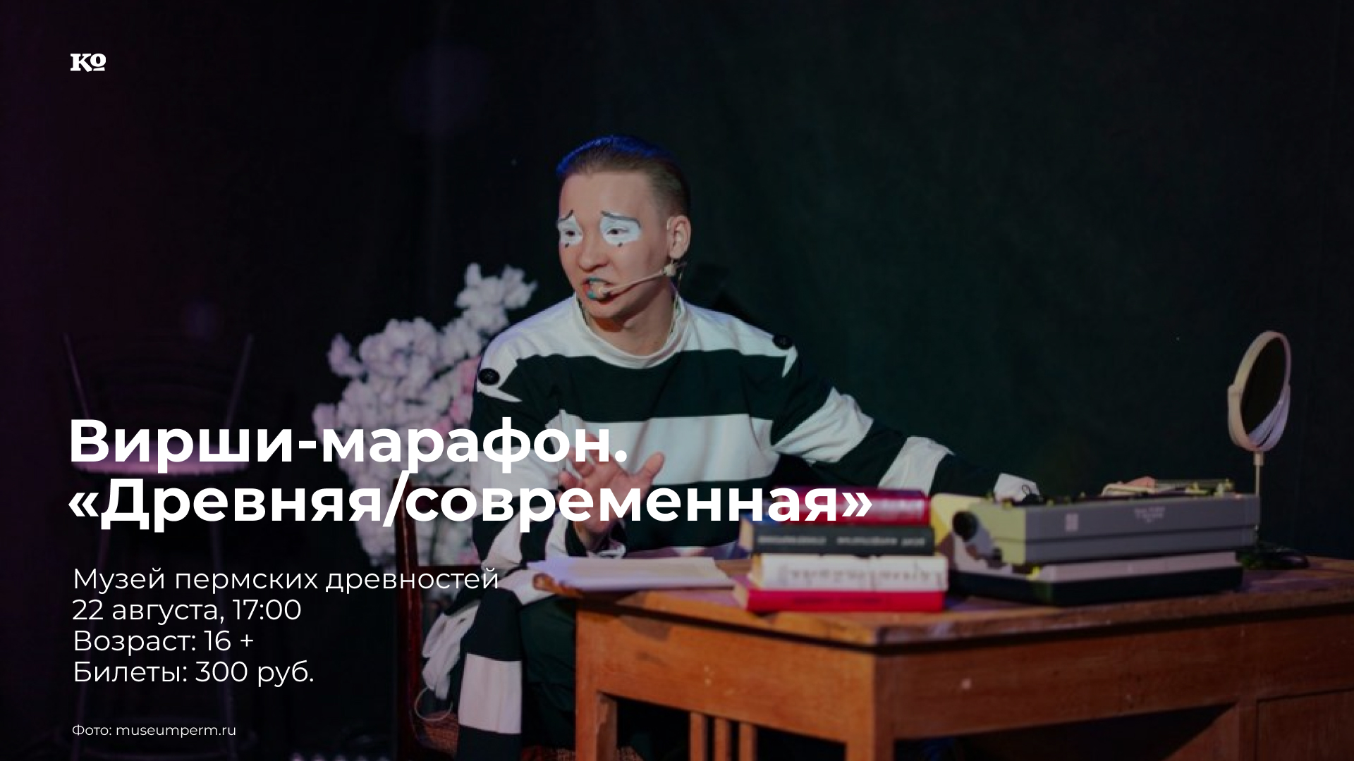 Второй вечер поэзии в рамках программы «Вирши-марафон» от творческого объединения «Искусство поэзии требует слов». Проходящей в музеях города. Каждой рифмой поэт впечатывает себя в вечность, подобно тому, как древние организмы отпечатываются в памяти планеты. Среди скелетов ископаемых животных современная поэзия звучит по-особому, заставляя задуматься о хрупкости жизни, силе творчества и ответственности за оставленный след. На сцену выйдут: Руфус, Александр Герцен, Олеся Останина и Екатерина Жигулёвская. Все четверо — молодые поэты, которых объединяет интерес к мистике и символизму, суровым сценам реальной жизни и загадочным персонажам мрачных сказок. После основной программы состоится открытый микрофон, где каждый желающий сможет прочитать по три текста.