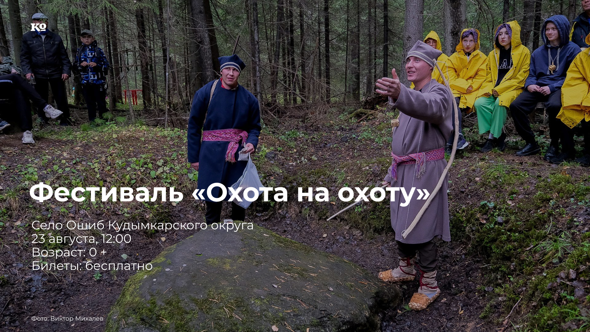 Это своего рода портал в мир, где мифы, легенды, предания, заговоры, сказки и истории, связанные с охотничьим промыслом, сливаются воедино. Фестиваль проходит в лесу возле мистического камня — валуна «ен из» недалеко от села Ошиб. В программе: реконструкция охотничьих обрядов, фольклор, ролевые игры, театральные представления, выставки. Гости фестиваля смогут примерить на себя образ охотника — коми-пермяка, послушают байки и былички заядлых охотников, познакомятся с репродукциями картин коми-пермяцкого художника Виталия Онькова, совершат подношение лесным духам, оценят коллекцию предметов охоты и рыболовства, посмотрят отрывки из музыкального спектакля — реконструкции «Вöралiсьлöн висьттез» («Былички охотника»). Любители лесных приключений смогут выбрать из трёх предложенных свой «Вöралiсь туй» («Путь охотника»), пройти его, преодолевая проказы вижлоков и лешаковой ведьмы, и принести дичь.