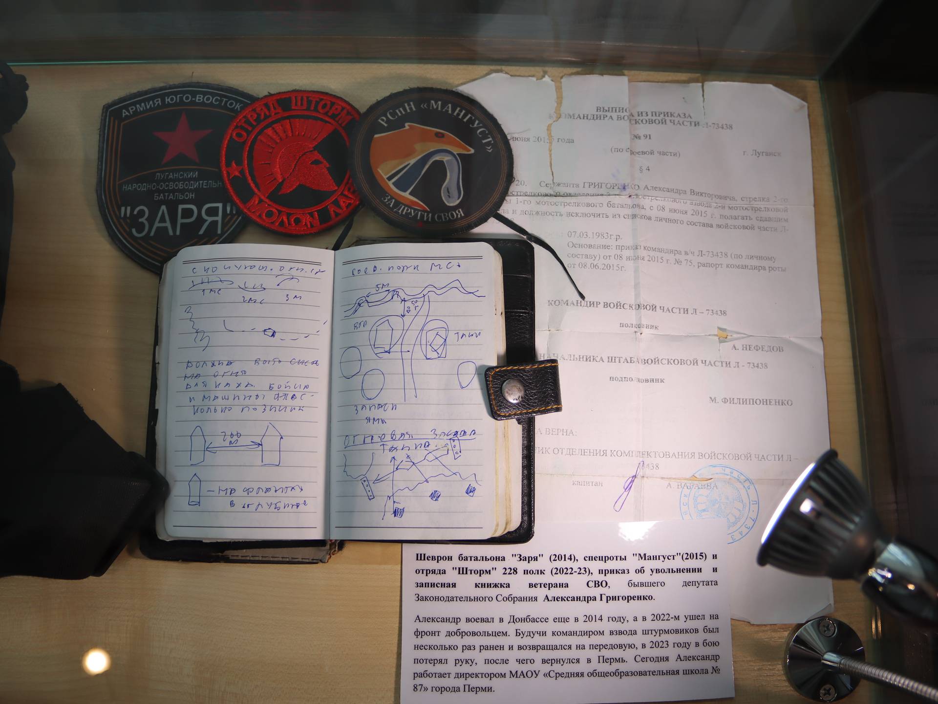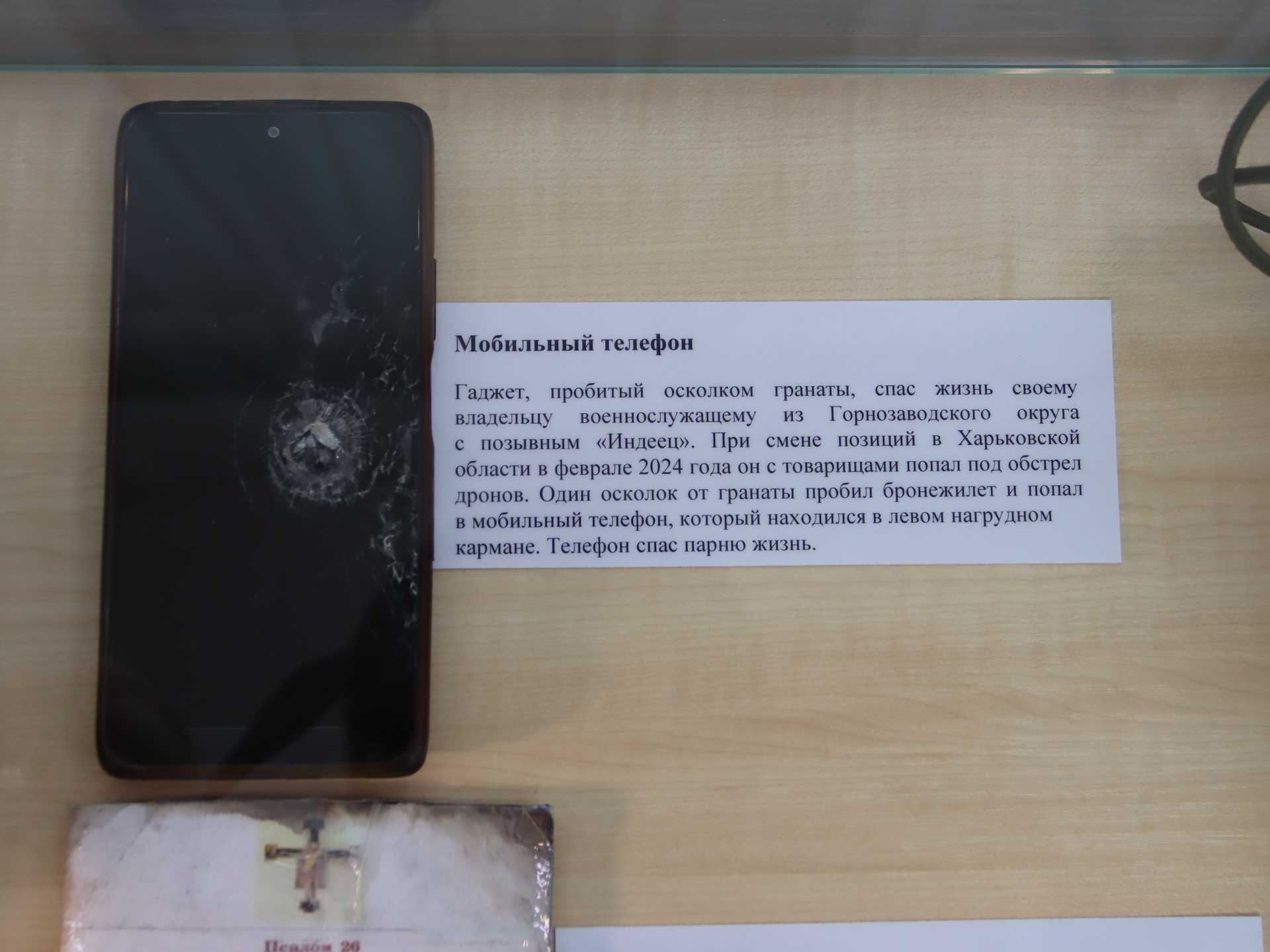 Часть экспозиции составили личные вещи военнослужащих из Пермского края. Среди них — предметы, предоставленные экс-депутатом краевого парламента, председателем Ассоциации ветеранов СВО Пермского края Александром Григоренко, членами Молодёжного парламента при Законодательном собрании Пермского края Леонидом Новохатским и Даниилом Степановым.