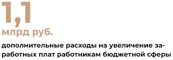 Дополнительные расходы планируется направить на увеличение заработных плат работникам бюджетной сферы «указных» категорий — 1,1 млрд руб. Это позволит увеличить средний уровень зарплат на 18% к среднему показателю прошлого года. Также предусмотрено дополнительное финансирование специализированной медпомощи пациентам с онкозаболеваниями, лекарственного обеспечения льготников, расширение мер поддержки участников СВО и членов их семей.