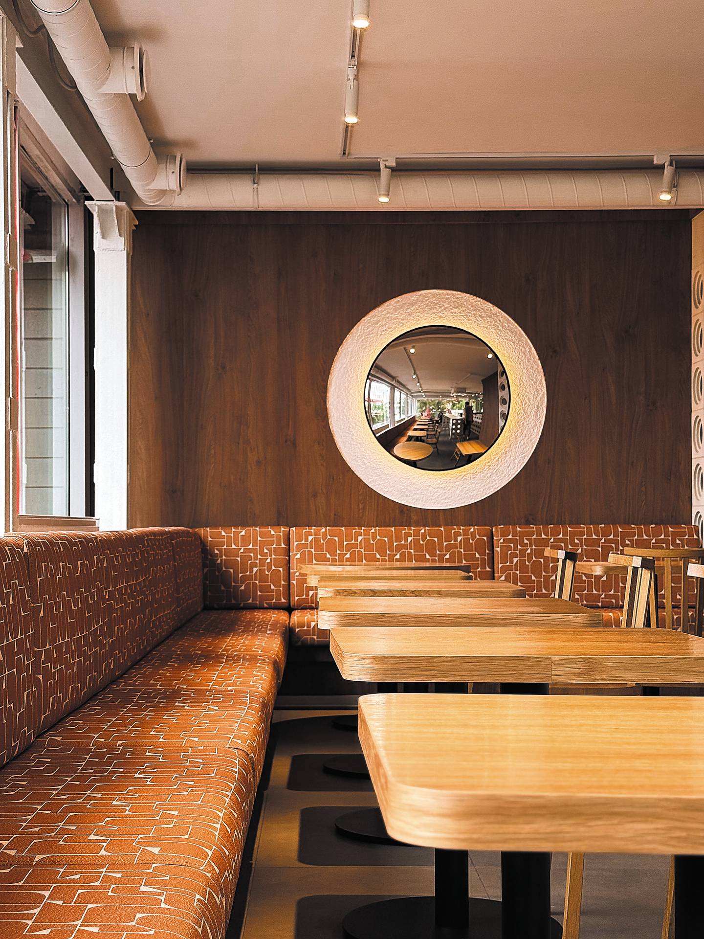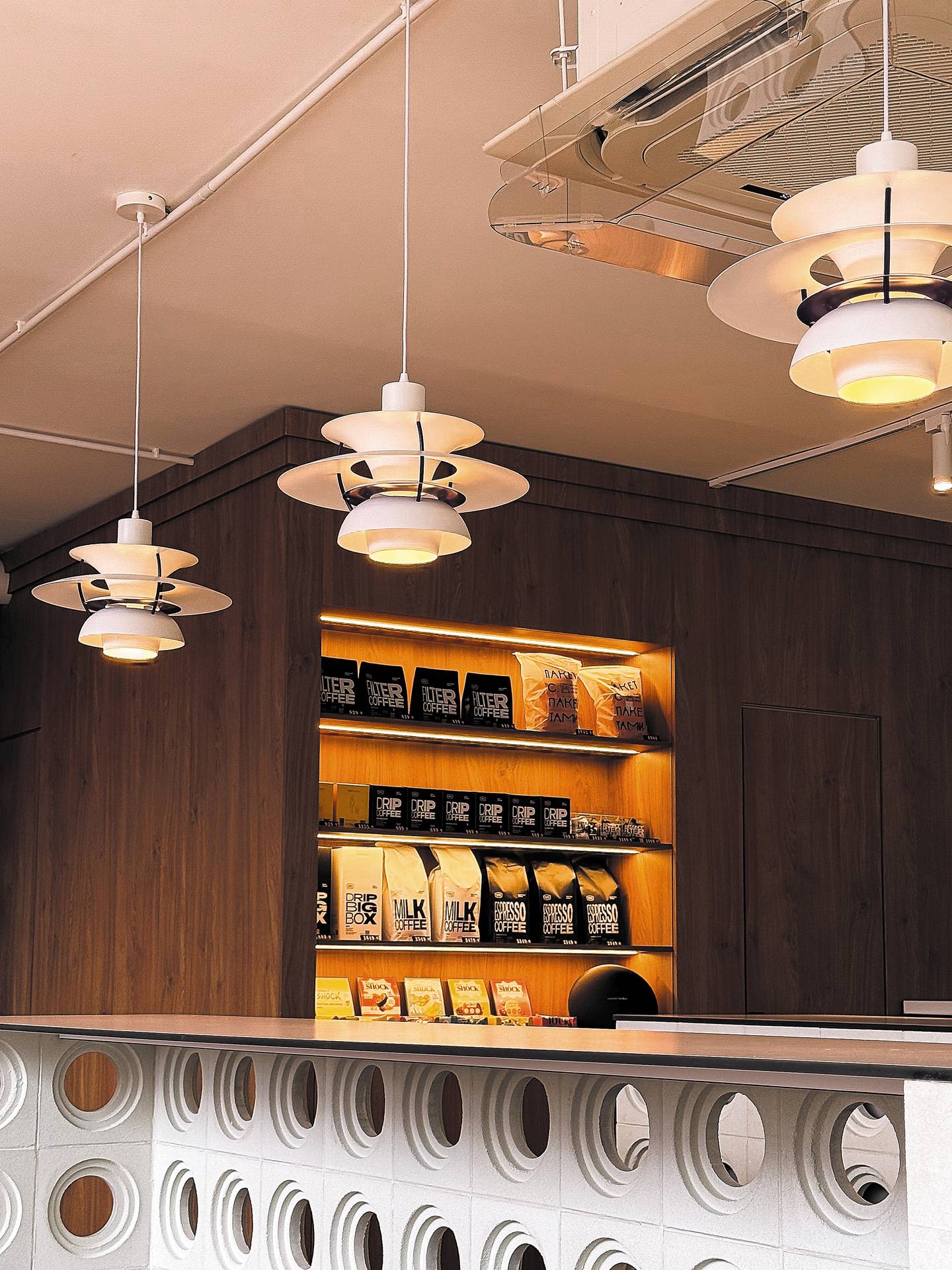 Кофейня радует просторным интерьером в светлых, спокойных натуральных тонах, где каждая деталь продумана до мелочей. В кофейне достаточно посадочных мест — от мягких диванов и кресел до общего длинного стола. Большие окна открывают живописный вид на «Новый центр», а рядом с кофейней располагается удобная и широкая парковочная зона.