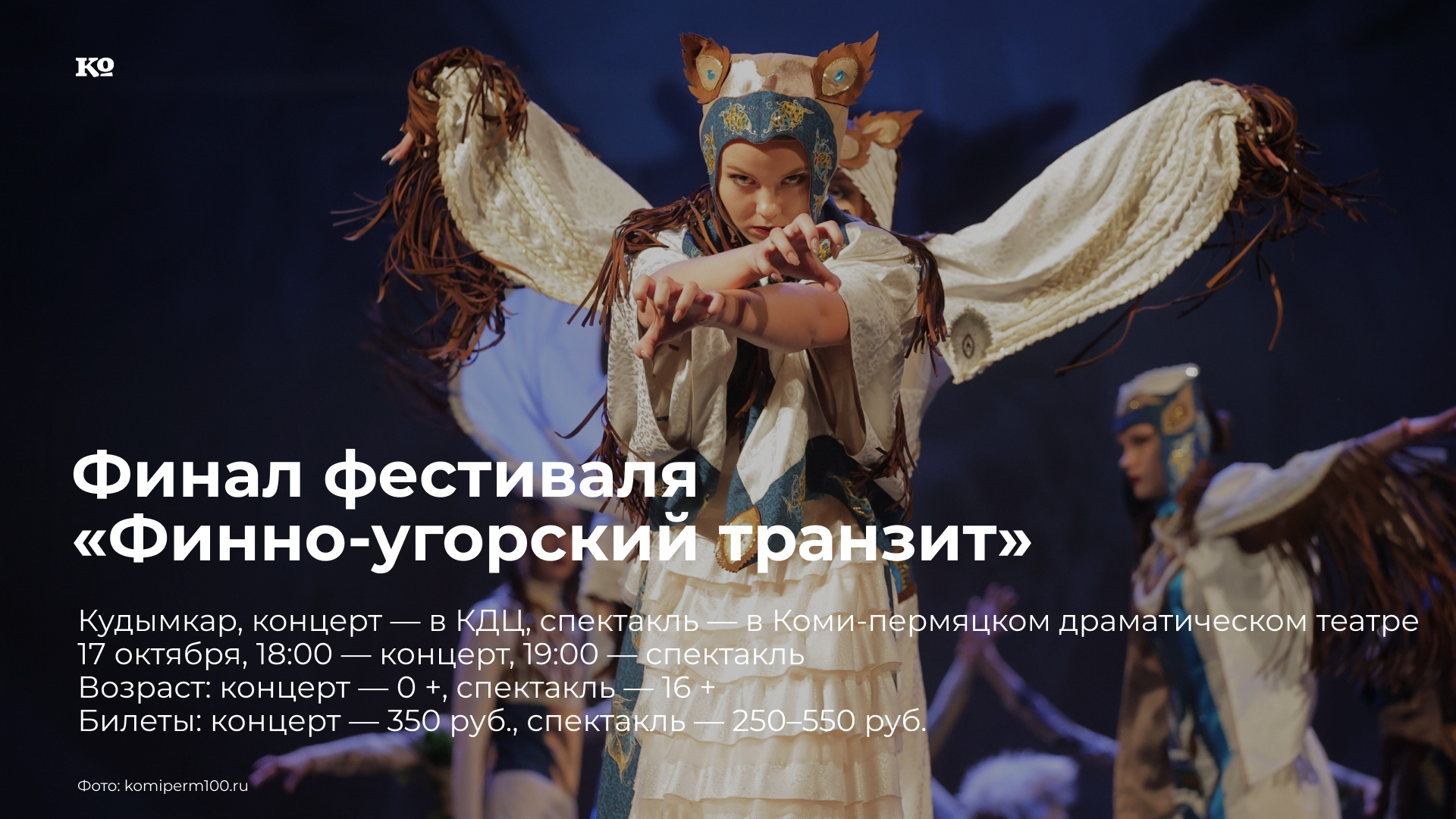 В Перми и Кудымкаре проходит Международный фестиваль искусств «Финно-угорский транзит», который каждый год меняет локацию и переезжает из одной столицы российского финно-угорского региона в другую. В Кудымкаре состоятся выставки, творческая лаборатория и экспертная секция. В гала-концерте выступят ансамбли «Шондiбан» (Коми-Пермяцкий округ), «Зоряйне» (Карелия), «Пеледыш» (Марий Эл), «Шудбур» (Удмуртия), «Тöмлун» и «Йöй» (Республика Коми), «Пувама» (Мордовия), театр моды Сыктывкарского колледжа сервиса и связи, Алексей Исаков (Республика Коми), а также Марина Садовничая (ДНР) и Анастасия Бояренева (Беларусь). В финале фестиваля будет показан спектакль «Кык кöч сьöрын» («За двумя зайцами») на коми-пермяцком языке с русским синхронным переводом — свежая премьера нового сезона.