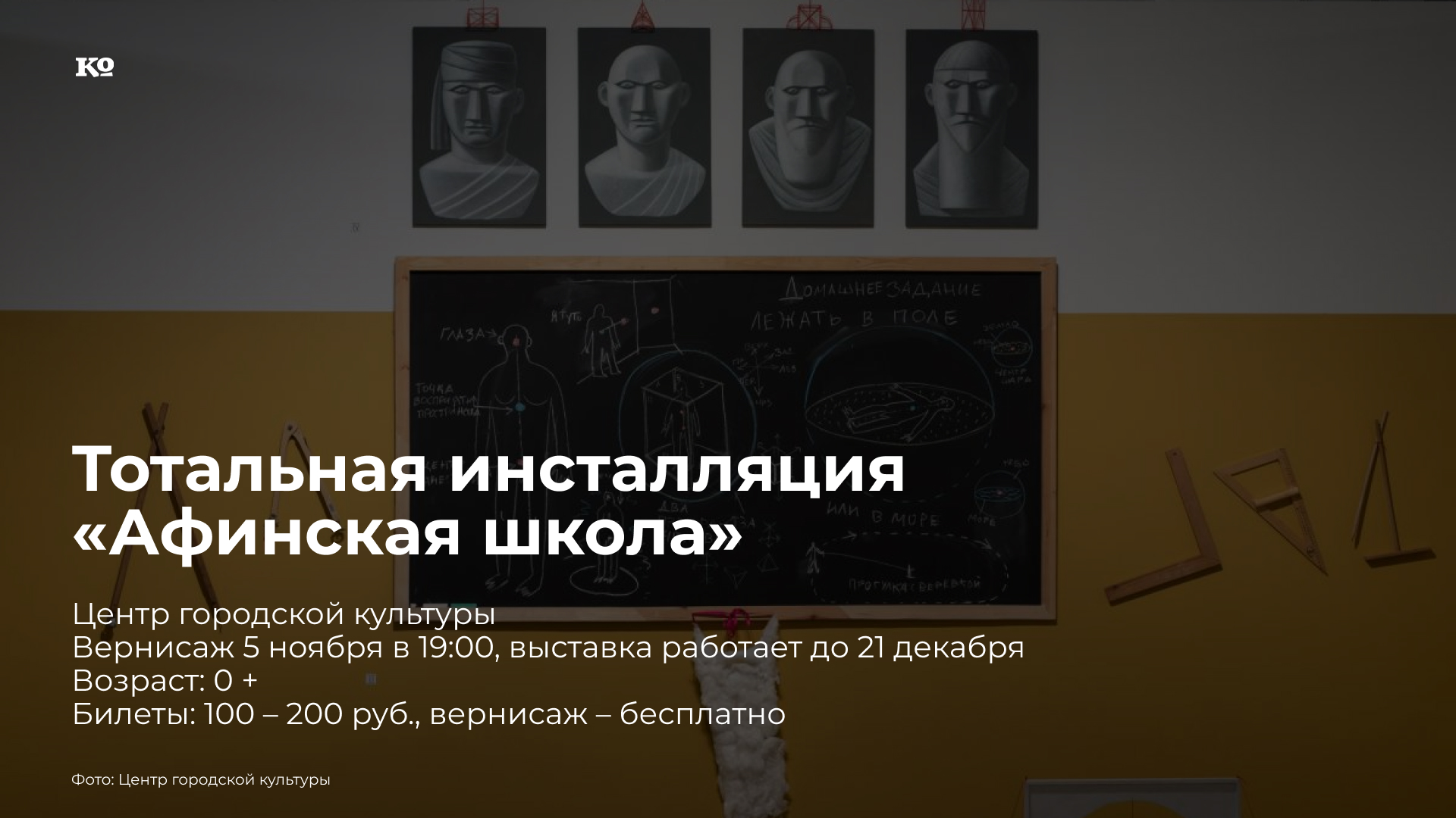 Выставка из коллекции Антона Козлова — крупнейшего собирателя современного искусства в России. Тотальная инсталляция Романа Сакина «Афинская школа» была создана в 2015 году. Инсталляция «Афинская школа» — это мистификация, представляющая авторскую реконструкцию филиала Афинской школы, воссозданную в трёх комнатах: учебном классе, столовой и спальне. Подобно платоновской Академии в Древней Греции школа Романа Сакина предполагает полное погружение студентов в учебный процесс, частью которого становятся не только занятия, но и трапеза, совместный труд, прогулка и даже тихий час. Художник, наследующий традициям московской концептуальной школы, каждый свой проект реализует как сложносочиненную систему, в которую включены продуманный визуальный ряд и подробно разработанное повествование. В эту авторскую систему художник вовлекает зрителя, который, шаг за шагом узнавая правила Афинской школы, проживает собственный опыт возвращения к «золотому веку».