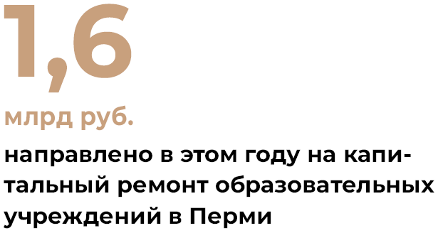 По словам начальника департамента образования администрации Перми, в приоритете городских властей сегодня не только строительство новых школ и детских садов, но и ремонт существующих учреждений. В рамках федеральной программы «Модернизация школьных систем образования» в Перми ведётся активная работа по комплексному капитальному ремонту детских садов и школ. Учреждения обновляются полностью — идёт замена коммунальных и инженерных сетей, систем безопасности, ремонты фасадов, кровли и т. д.