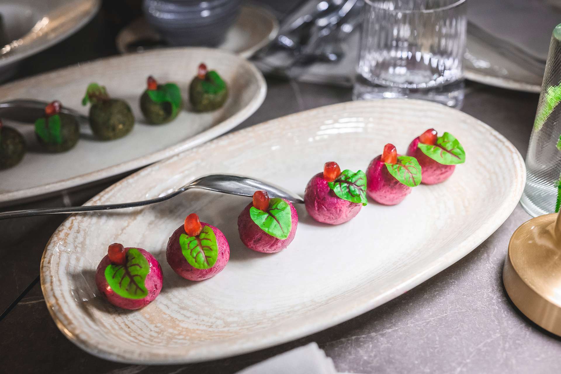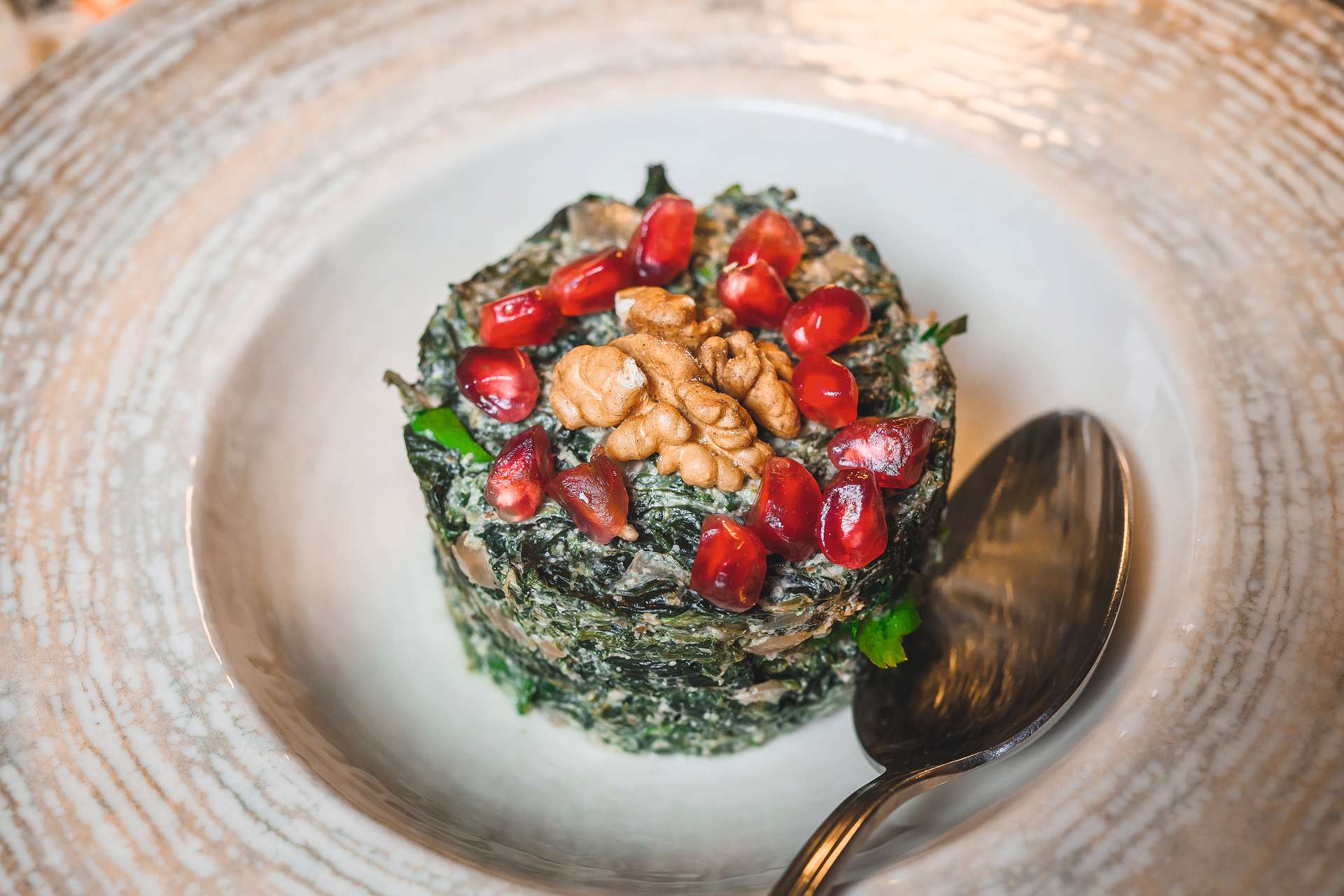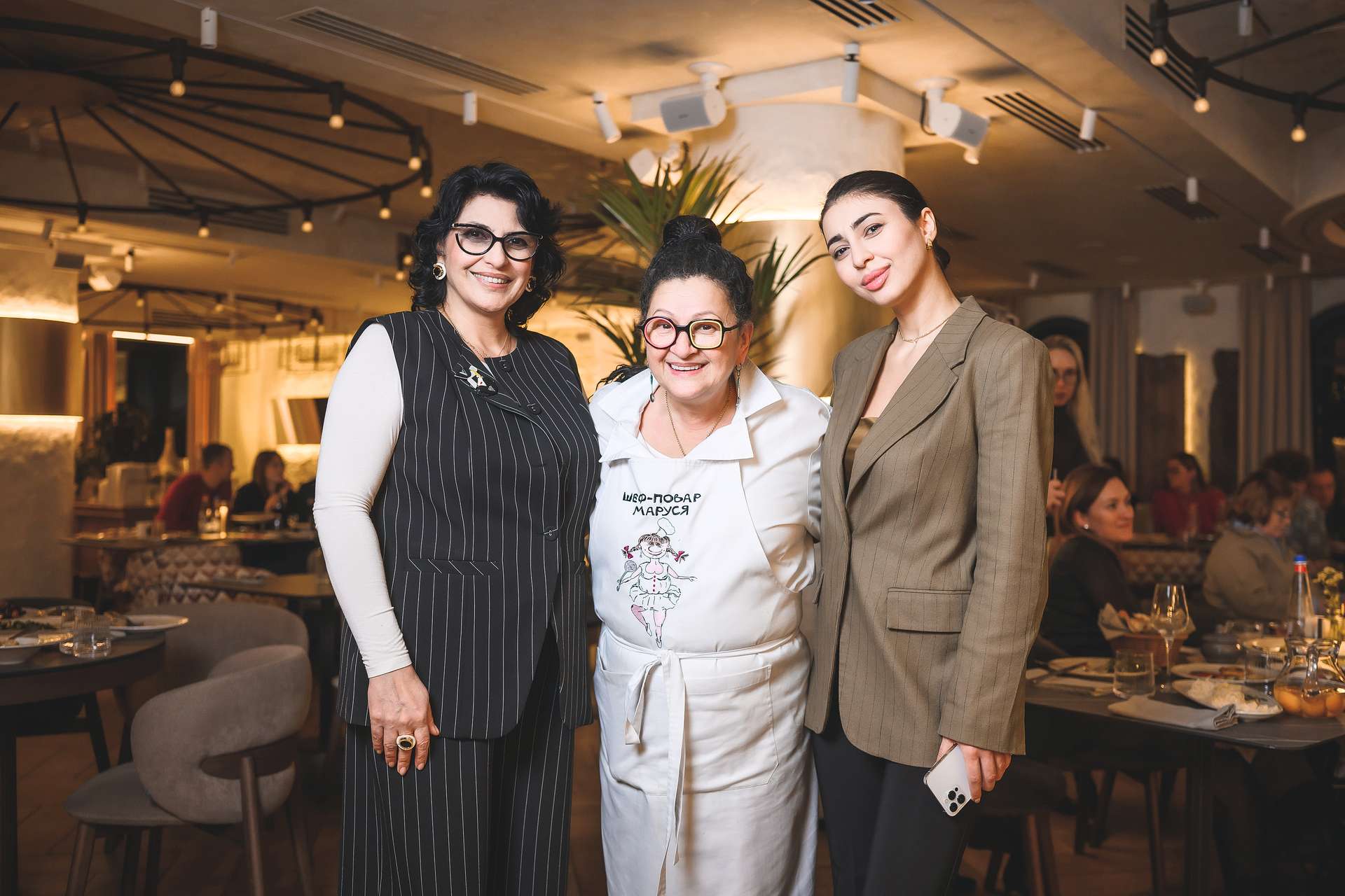 Бренд-шеф познакомила гостей с философией кавказского застолья и рассказала о традиционных блюдах, которые гармонично сочетают в себе насыщенный вкус и принципы сбалансированного питания. Гостей ждало настоящее гастрономическое путешествие! На столах были представлены ассорти сыров, пхали, шпинат с соусом мацони, холодец, грузинский салат, обилие зелени, долма, люля-кебабы из курицы и другие кавказские блюда — всё это создавало атмосферу тёплого дружеского застолья.